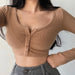Hnewly Korean Slim V-neck Long Sleeve Bottomed Womens Tops And Blouses High Street Solid Color Open Navel Cardigan U4WF