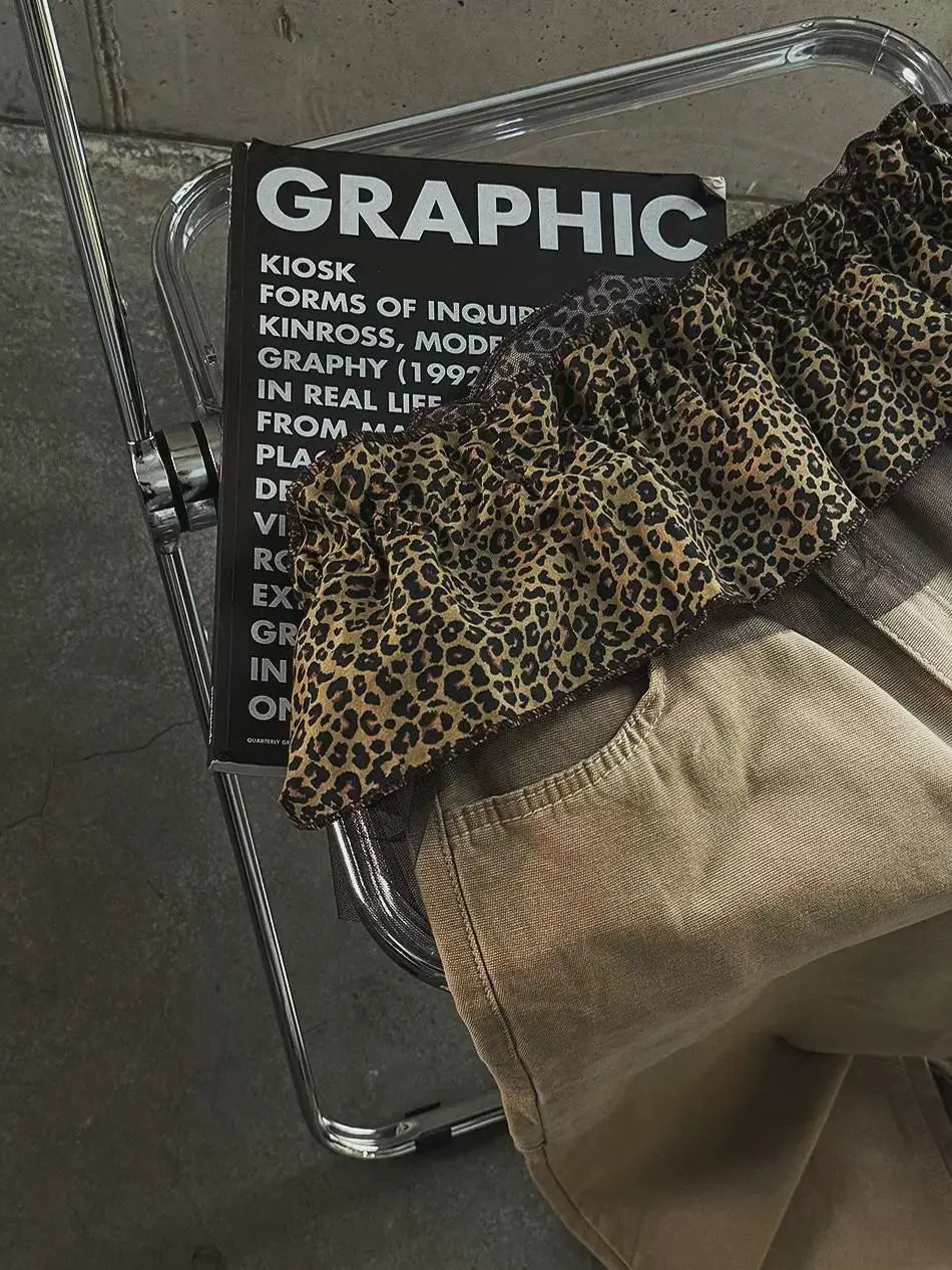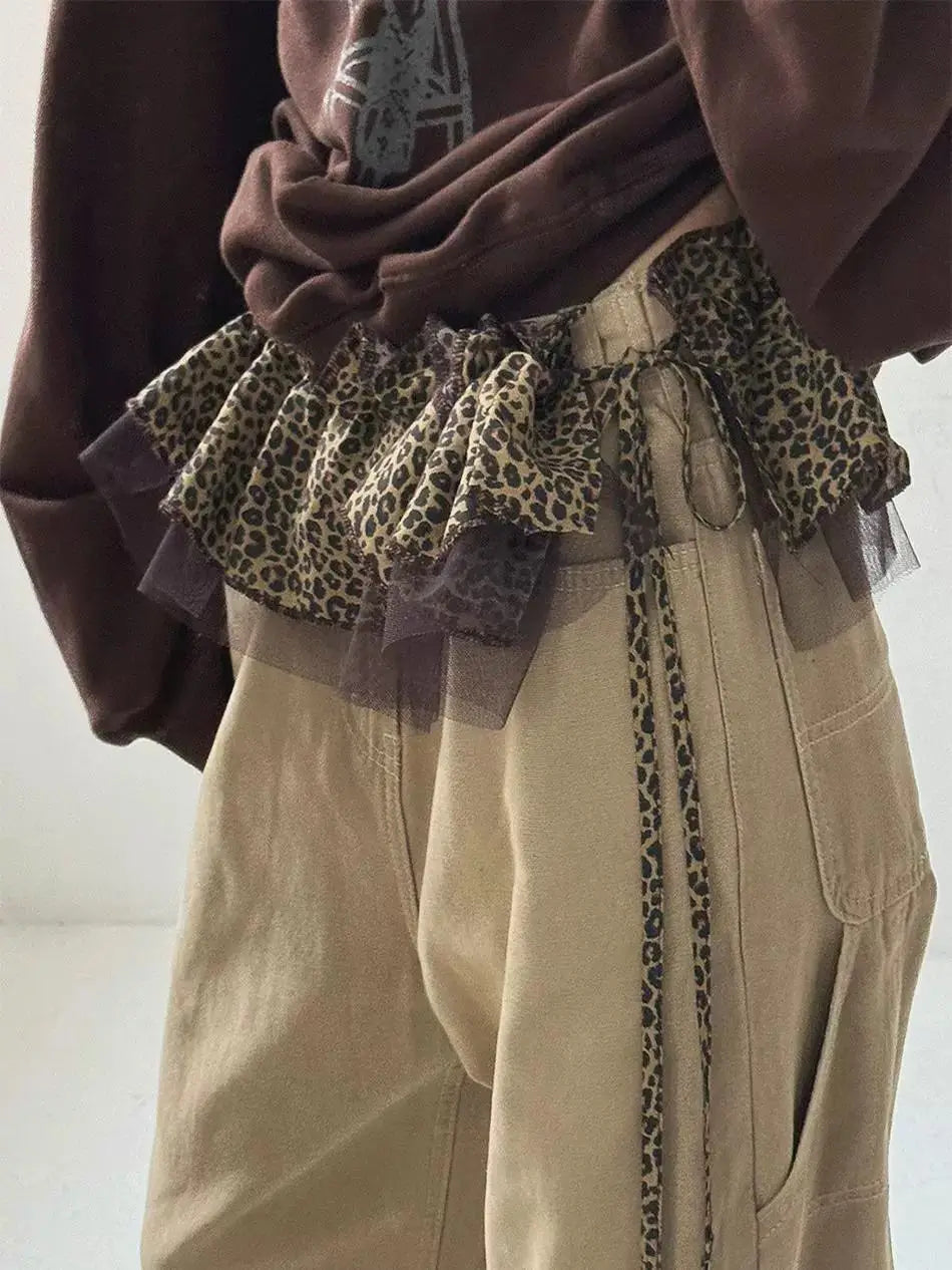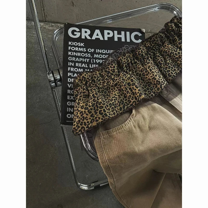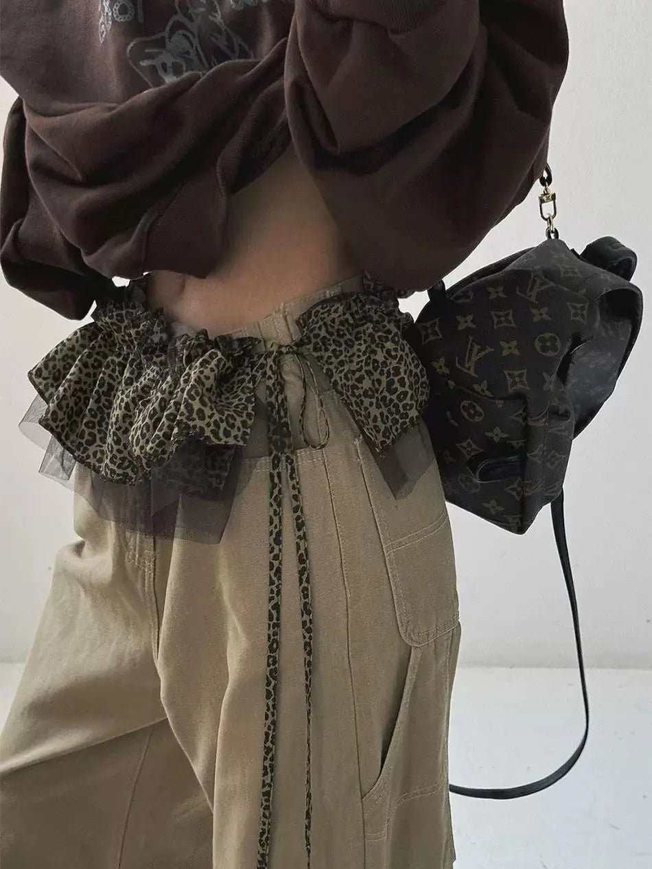Hnewly Korean Style Leopard Print Mini Skirts Women Y2k Fashion Lace Up Short Skirt Elegant Sweet Streetwear Cute Ruffle Skirt
