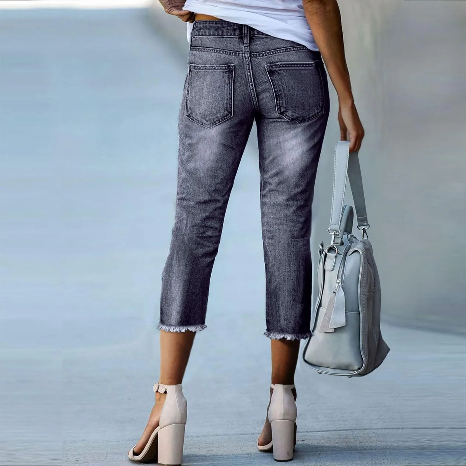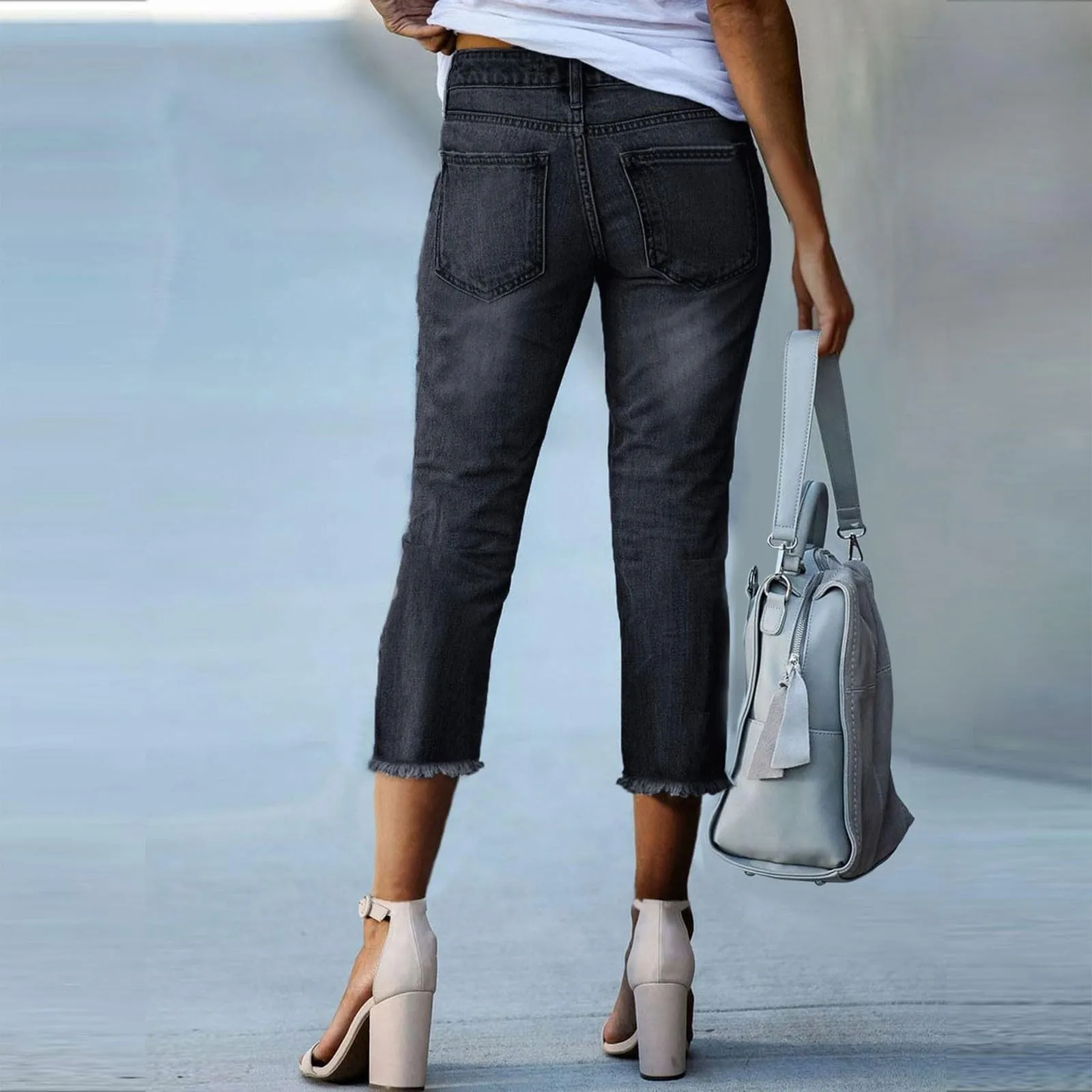 Hnewly Ladies' Fashionable Slim Fitting Ripped Trendy Jeans Summer Streetwear Casual Distressed Stretchy Denim Pants