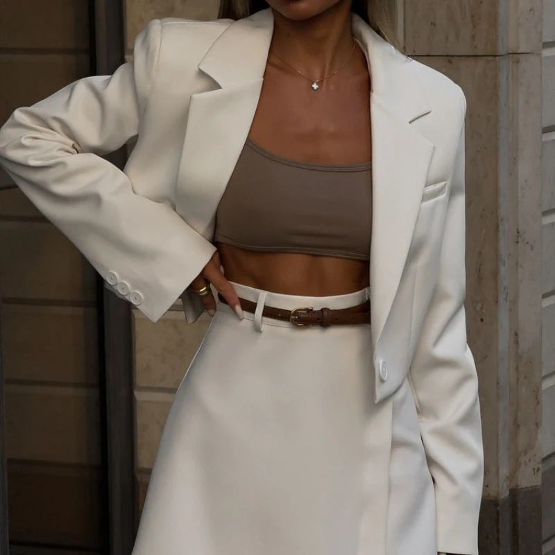 Hnewly Lapel Long-Sleeved Suit Women's Suits Button Solid Blazer Coat Short Skirt 2-Piece Suits Fashion Commuting Autumn New
