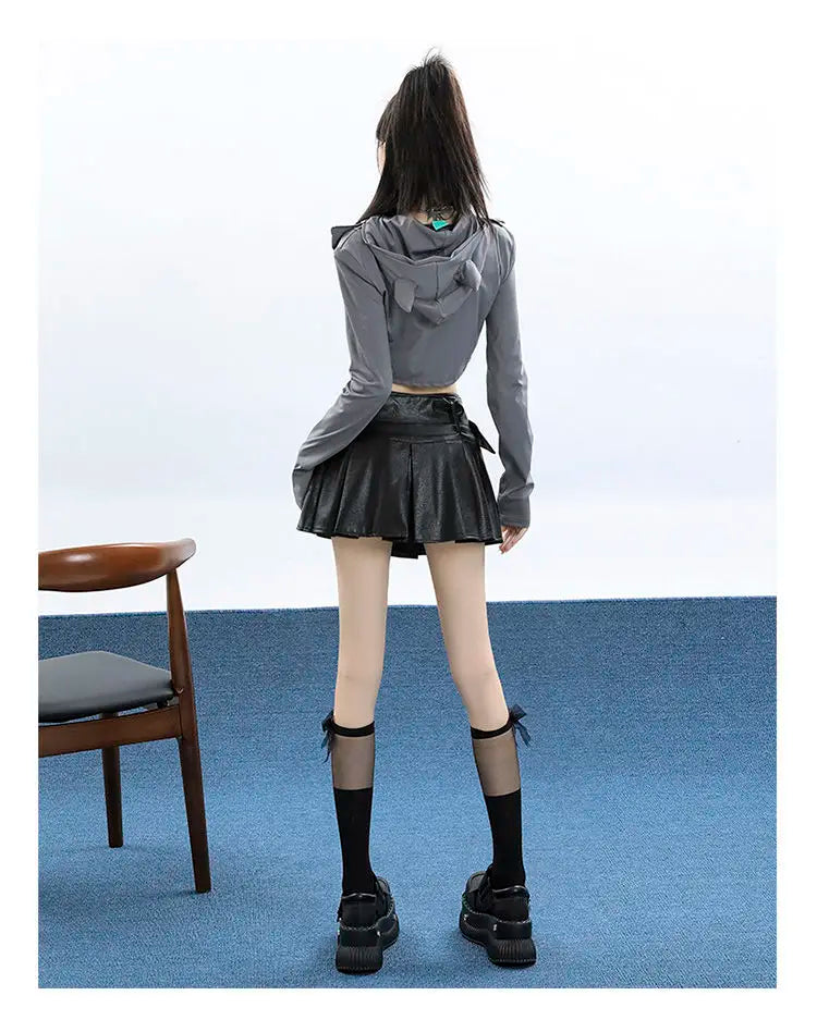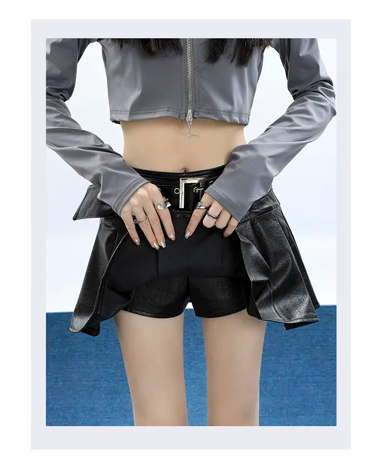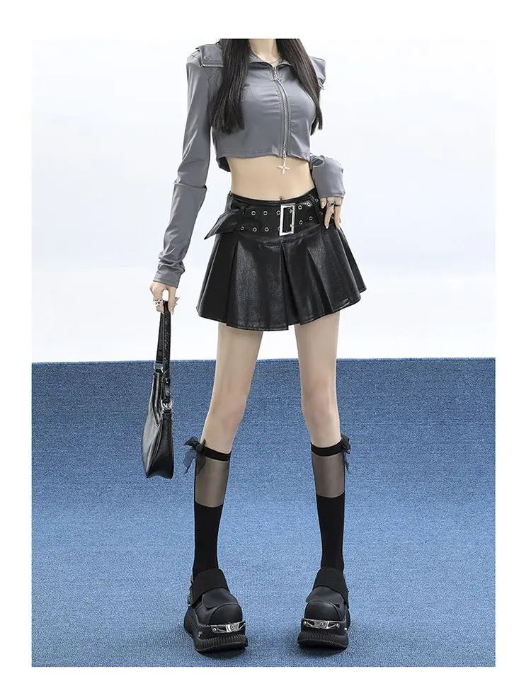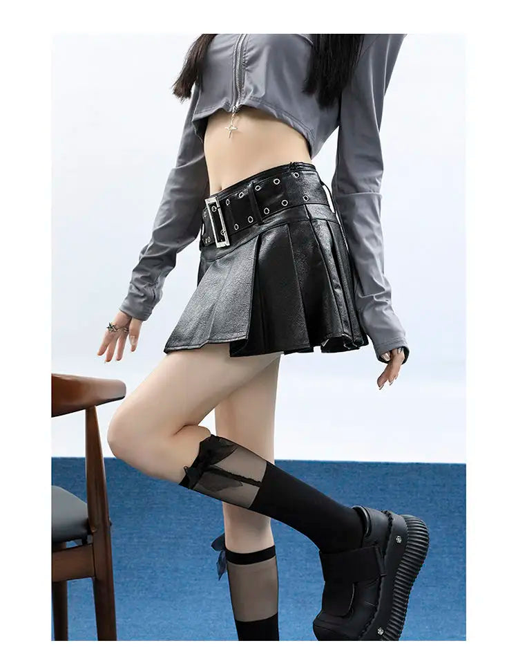 Hnewly Leather Skirt Black Punk Women Sexy Pleated Grunge Vintage Mini Skirt Y2k Gothic Streetwear A-line Ladies Retro Skirts