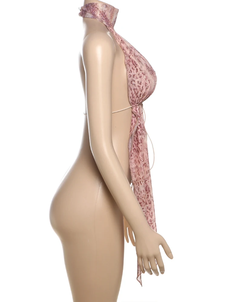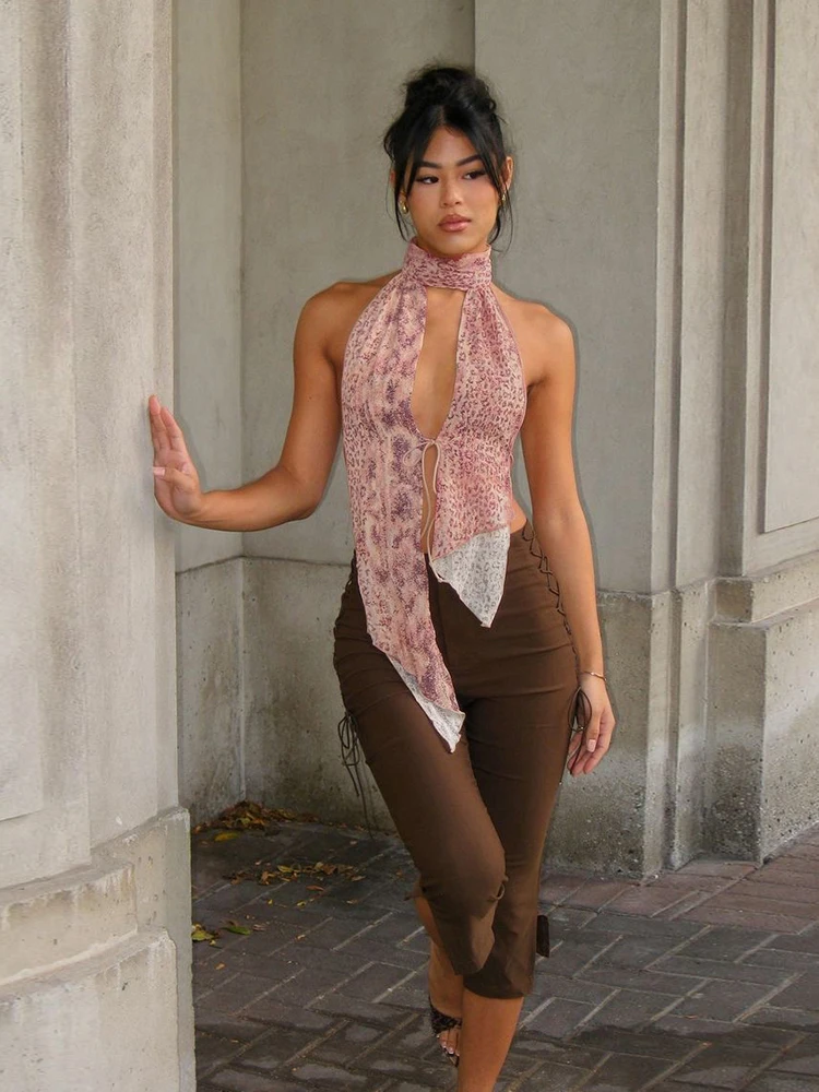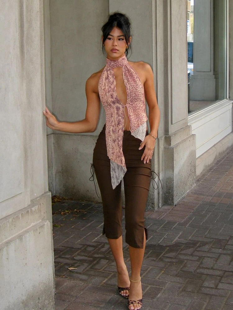 Hnewly Leopard Print Backless Camisole Women Y2K Sexy Shirring Ruched Halter Sleeveless Elegant Party Summer Trend Slim Vest