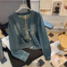 Hnewly Light Blue Retro Denim Jacket Women's Spring Single Breasted Loose Cardigan Short Top Autumn O-Neck Long Sleeve All-Matched Top
