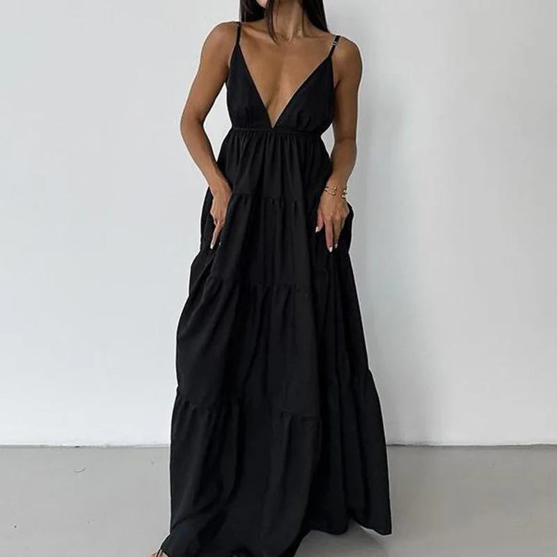 Long Skirt Sexy Open Back Temperament Strap Skirt Vacation Style Dress