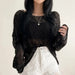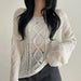 Hnewly Long Sleeve Crochet Top Cable Knit Summer Beach Bikini Cover Up Crop Pullover Openwork Blouse Women Vacation Boho Outfit