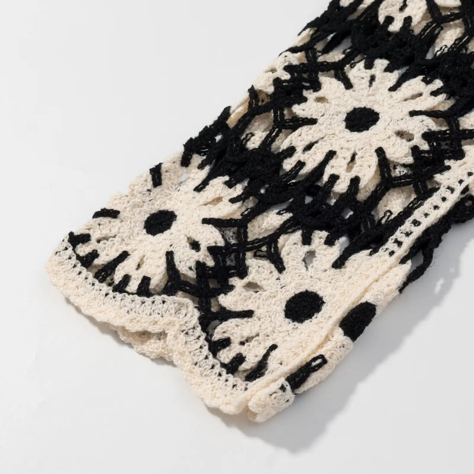 Hnewly Long Sleeve Daisy Crochet Top Women Sheer Openwork Floral Knit Pullover Sweater Teen-girl Cover Up Boho Beach Vacation Outfit