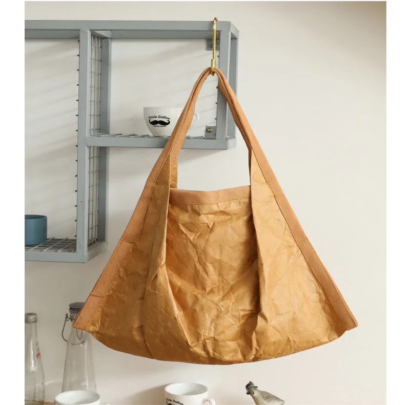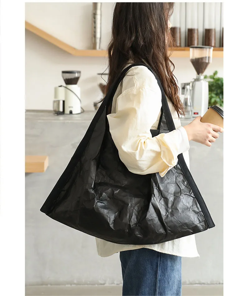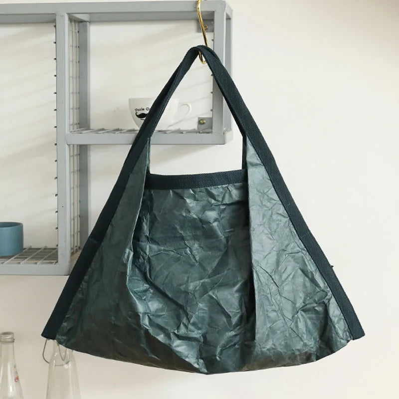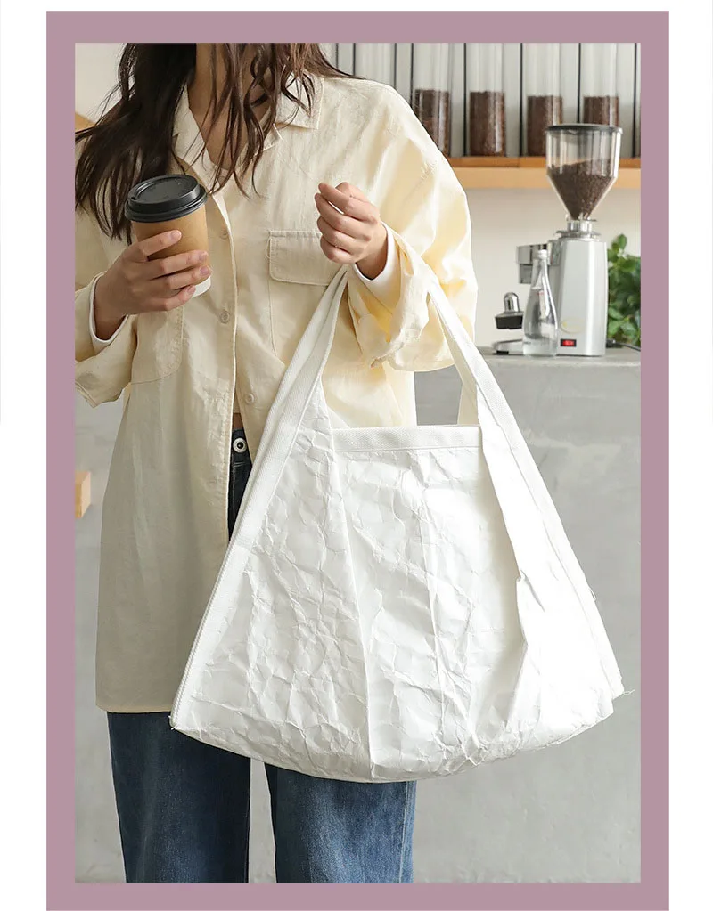 Hnewly Mask Shaped Shoulder Bag Pleated DuPont Paper Handbag Casual Tote Pure Color Shopping Bags For Women