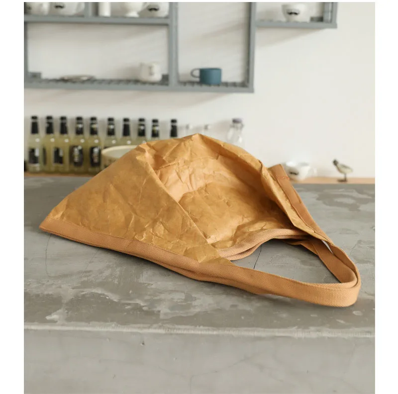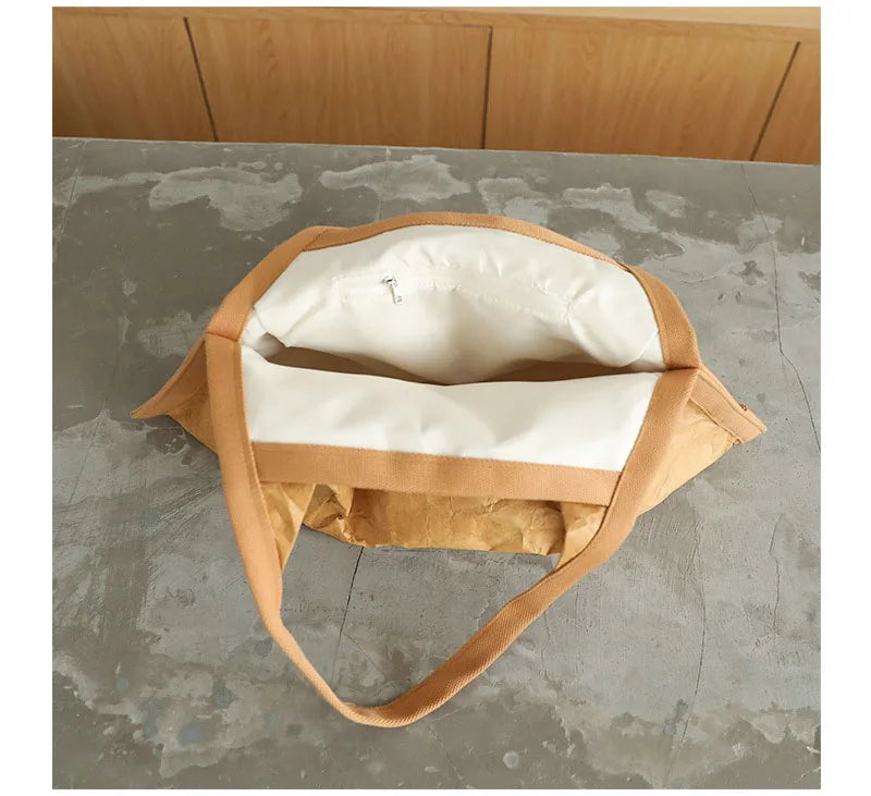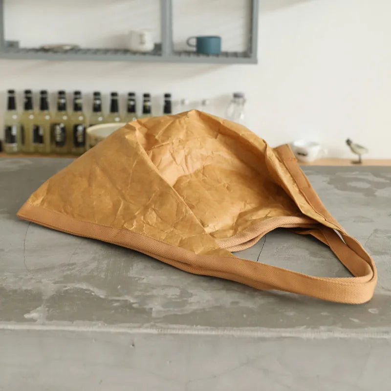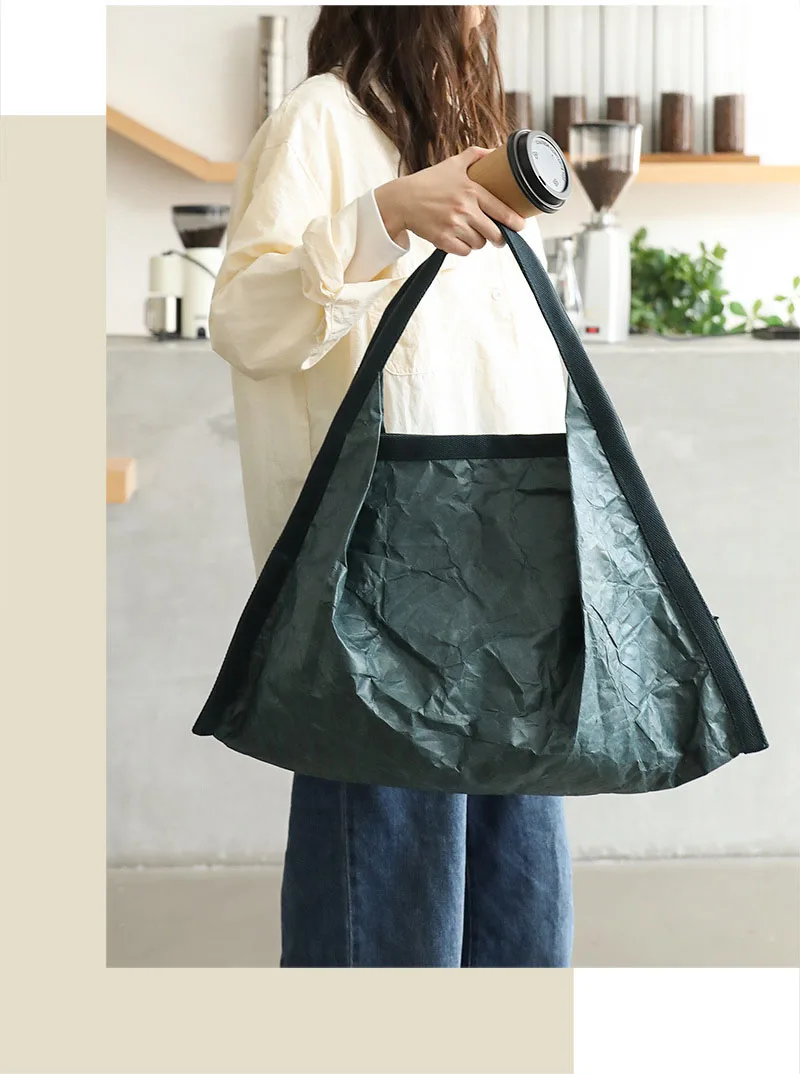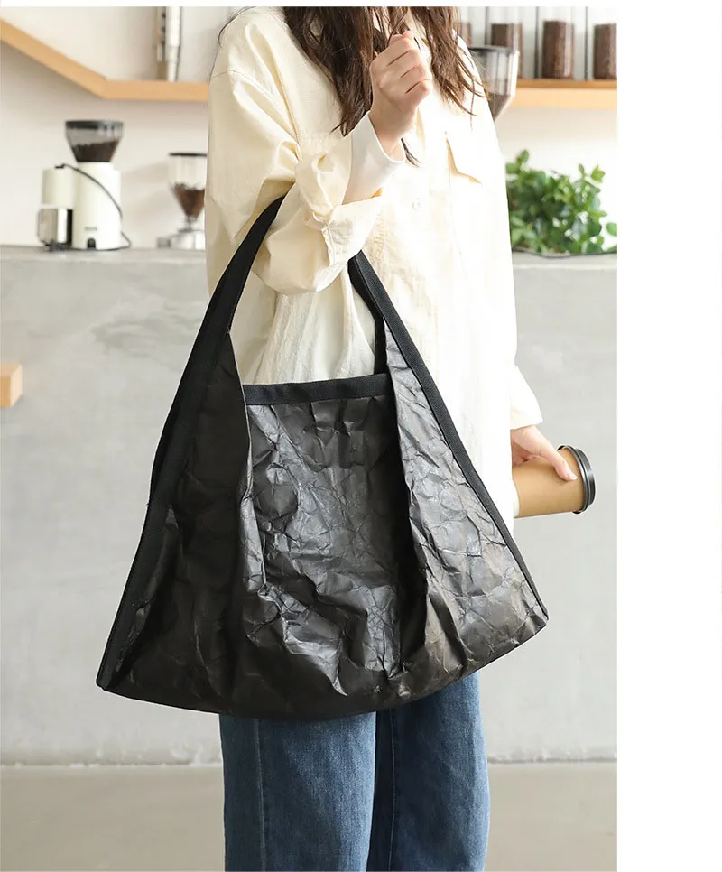 Hnewly Mask Shaped Shoulder Bag Pleated DuPont Paper Handbag Casual Tote Pure Color Shopping Bags For Women