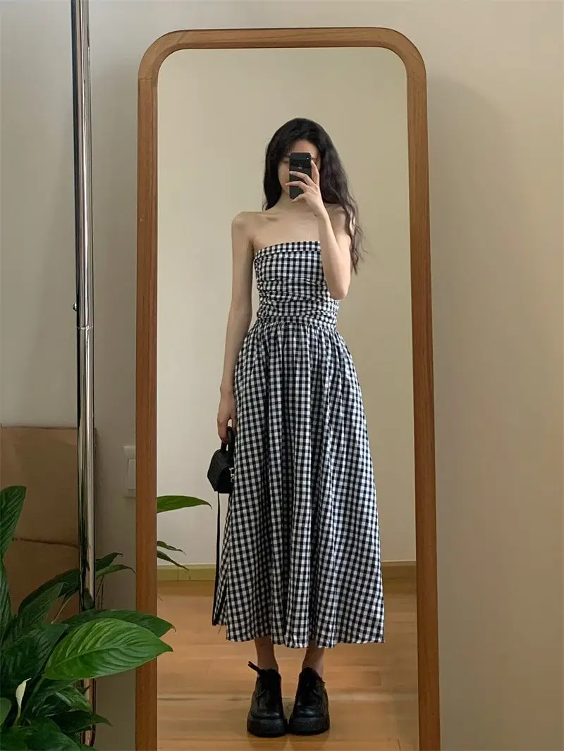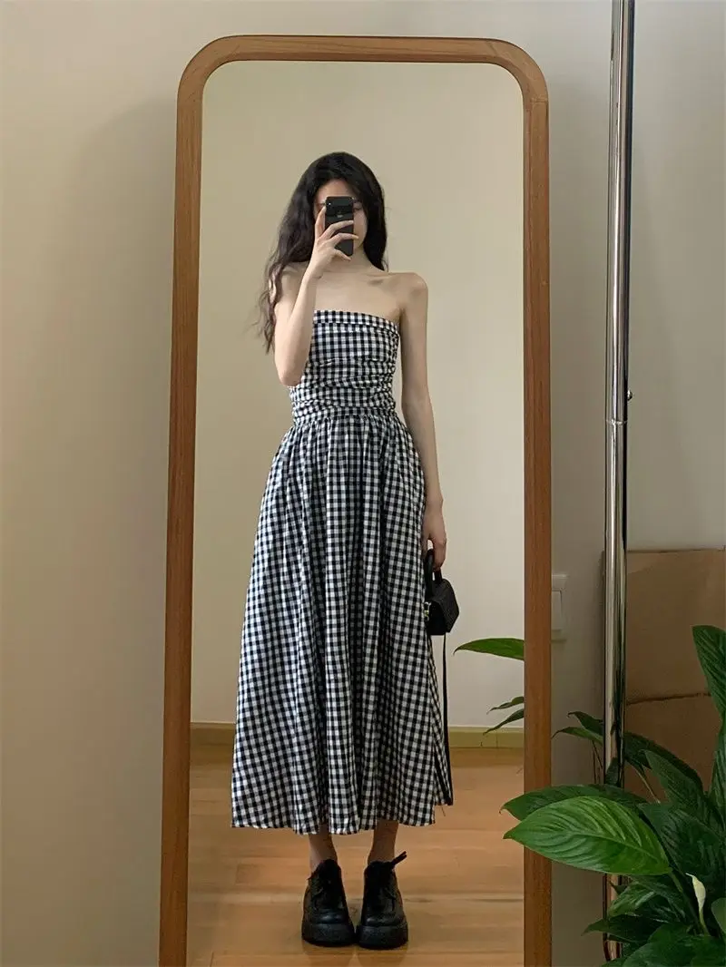 Hnewly Maxi Dress Women Beach Style Chic Strapless Classic Vintage Hotsweet Vacation Summer Leisure Folds Backless Sexy French Vestidos
