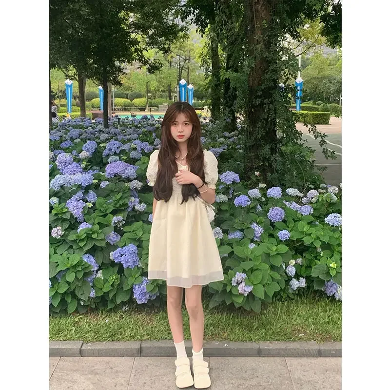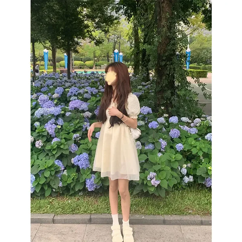 Hnewly Mesh Dresses Women Patchwork Princess Fairycore Aesthetic Korean Style Temperament Kawaii Summer Empire New Casual A-line Chic