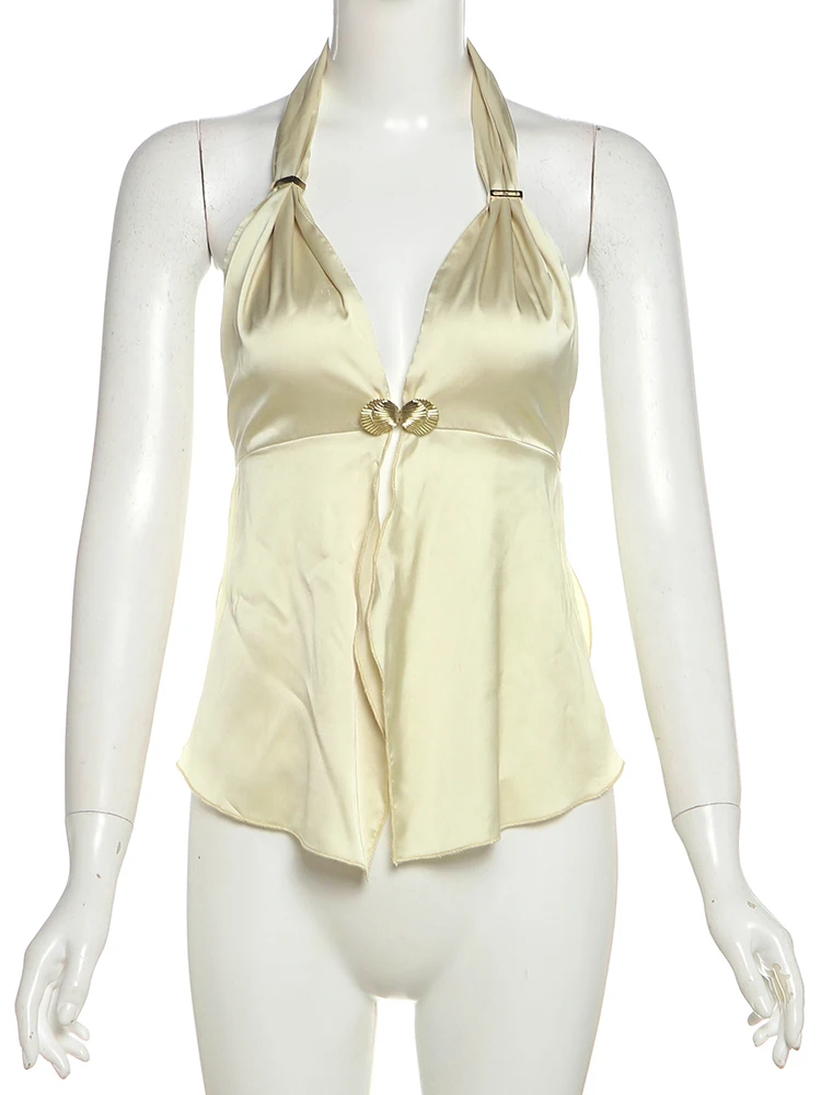 Hnewly Metal Shell Clasp Tank Tops Women Y2K Halter Backless Sleeveless Summer Trendbeach Party Midnight Wild Vacation Vest