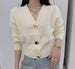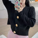 Hnewly Metallic Gold Button Cardigan Women Rib Knit Long Sleeve V-neck Button-up Crop Jacket Korean Fashion Fall Winter Outfit