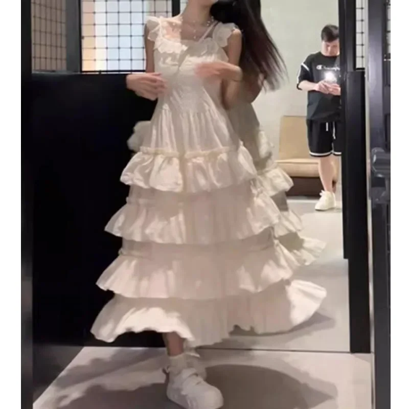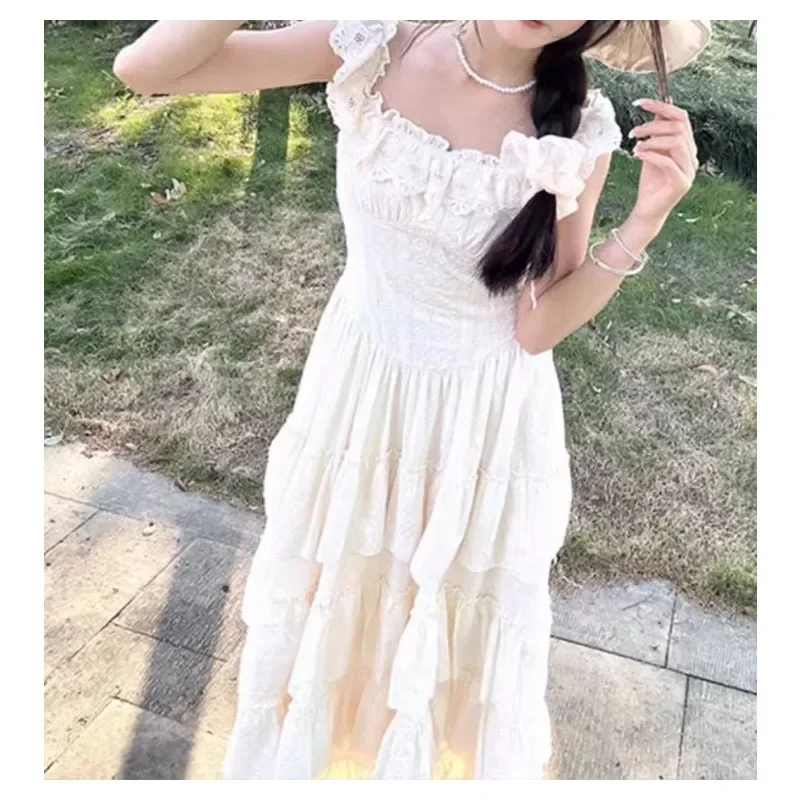 • Lace Stitching Design : The Xiaofei Sleeve Sling dress features intricate lace stitching, adding a touch of elegance and femininity to the mid-length cake skirt.
