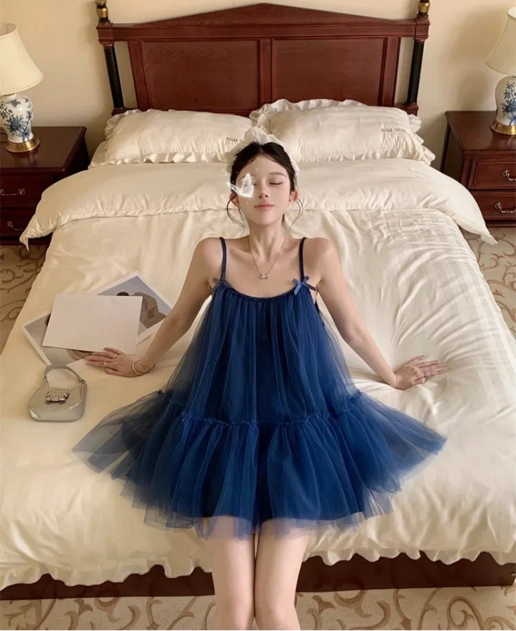 Hnewly Mini Dresses Women Bow Sleeveless Slash Neck Mesh Patchwork Sweet Party Dress Sexy Party Female Fashion Princess