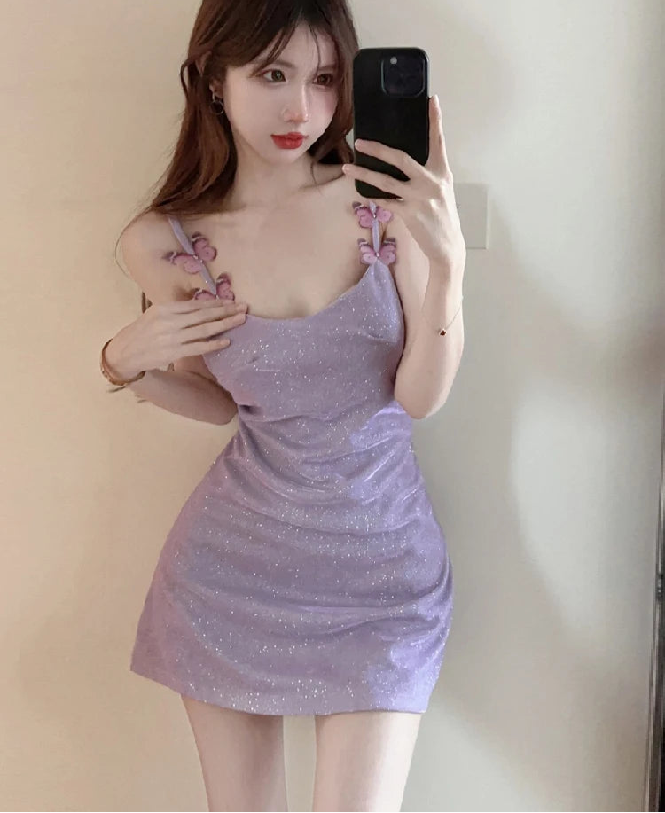Hnewly Mini Dresses Women Butterfly Sleeveless Slash Neck Backless Bandage Slim Elegant Party Temperament Dress Female Fashion
