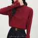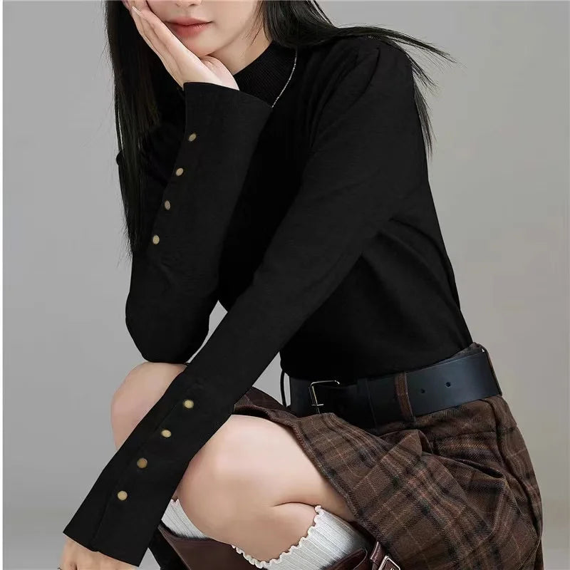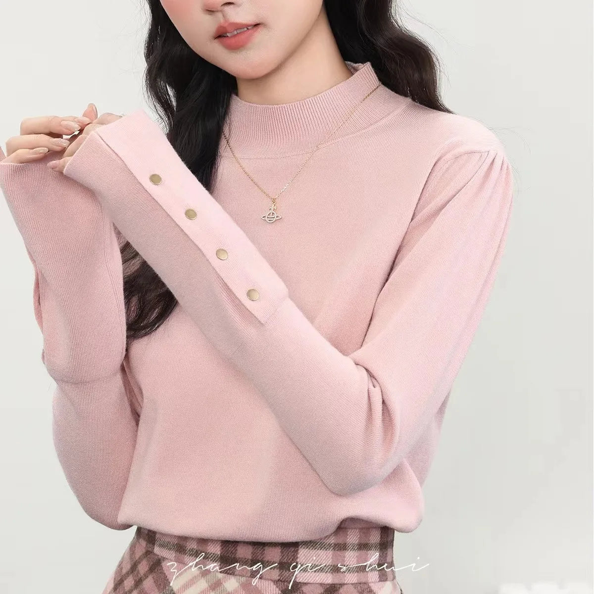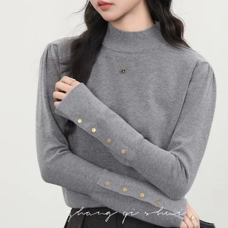Hnewly Mock Neck Knit Sweater for Women Long Sleeve Buttoned Cuff Fitted Pullover Plain Knit Top Jumper Fall Winter Basic Outfit