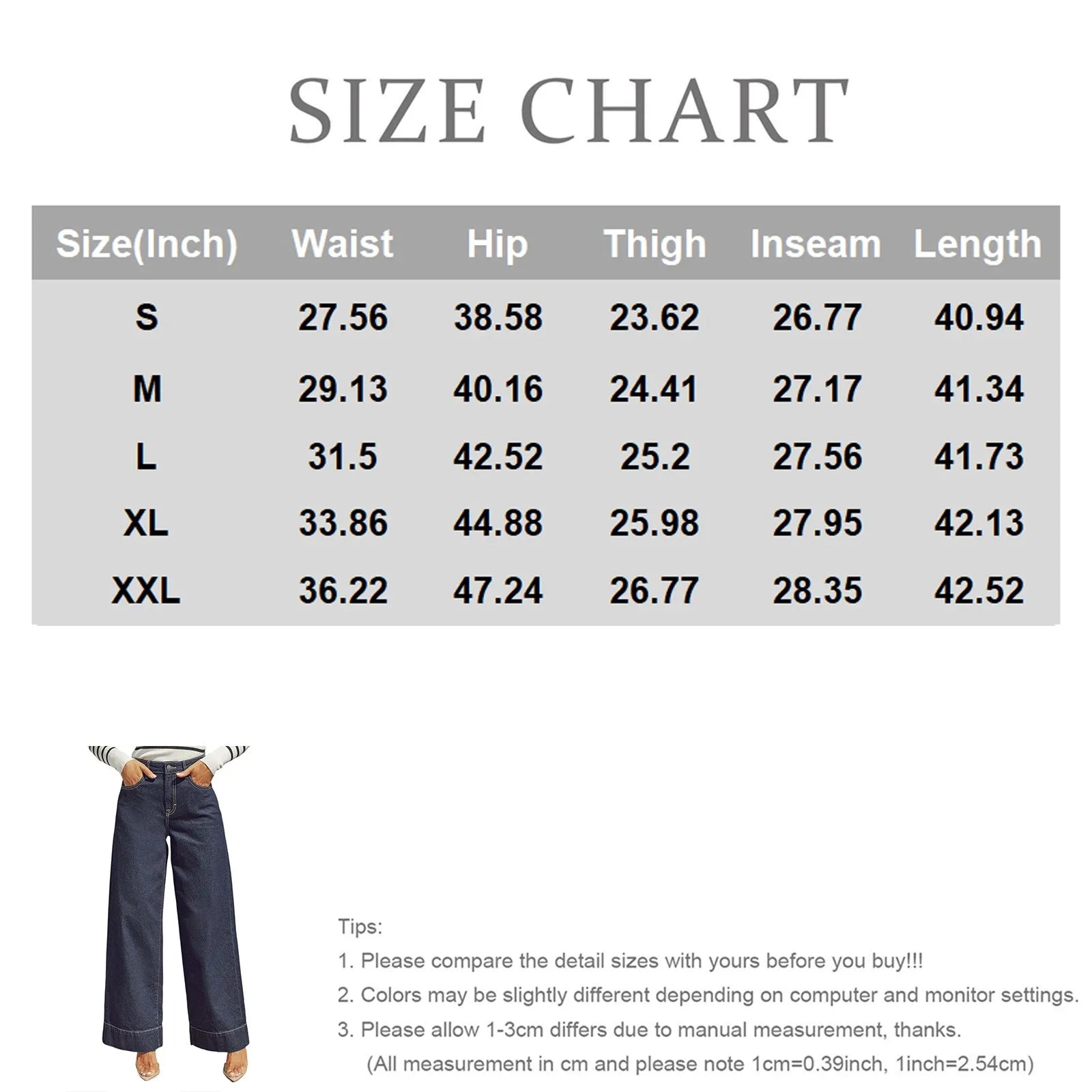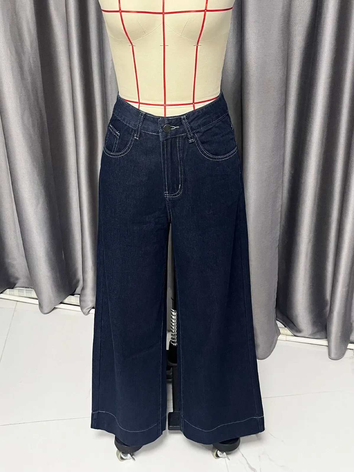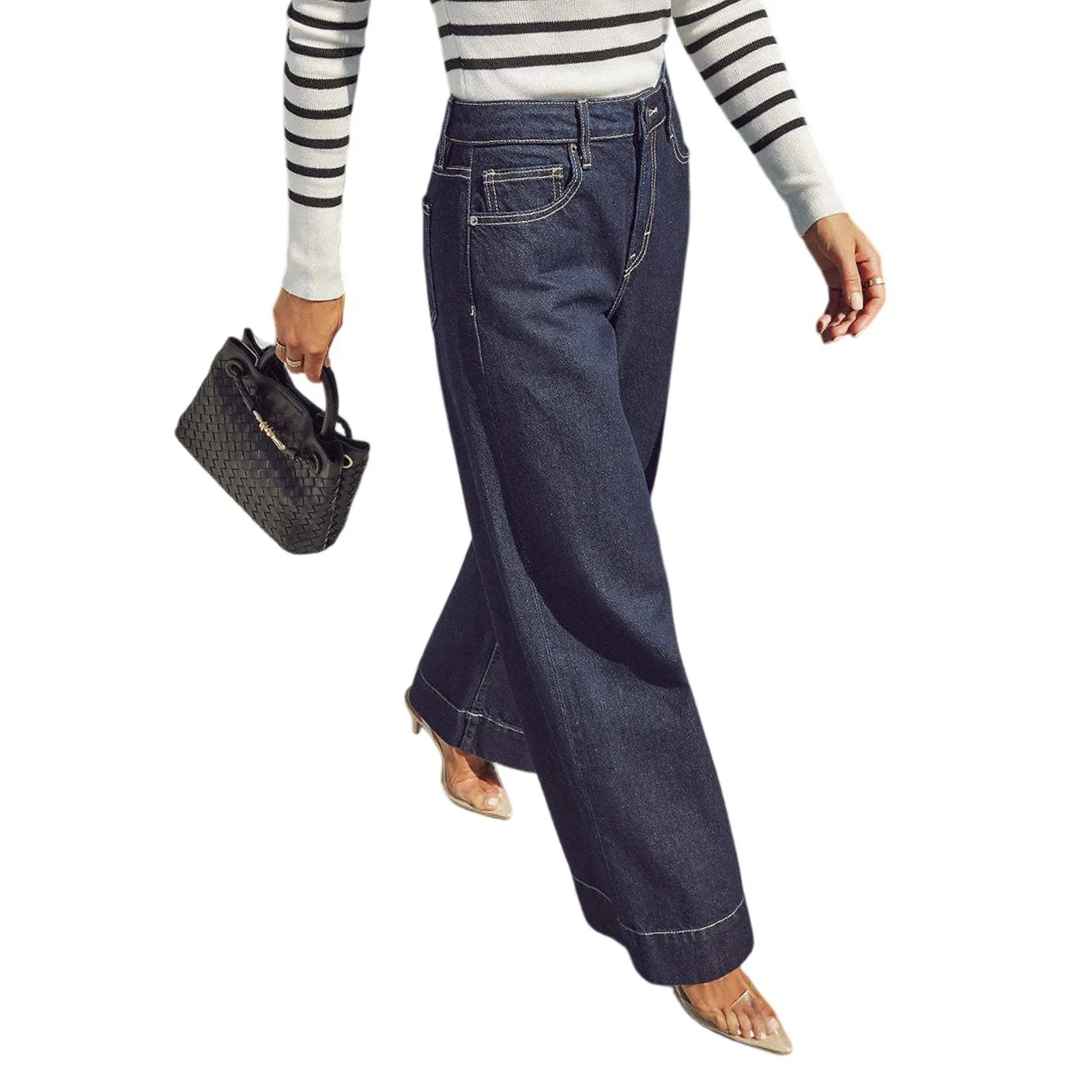 Hnewly New Deep Blue Retro Women High Street Vibe Wide-leg Jeans Fashion High Waist Wide Leg Daily Commuted Loose Straight Pants
