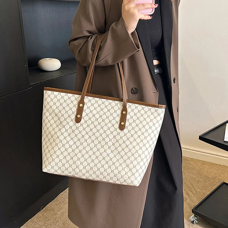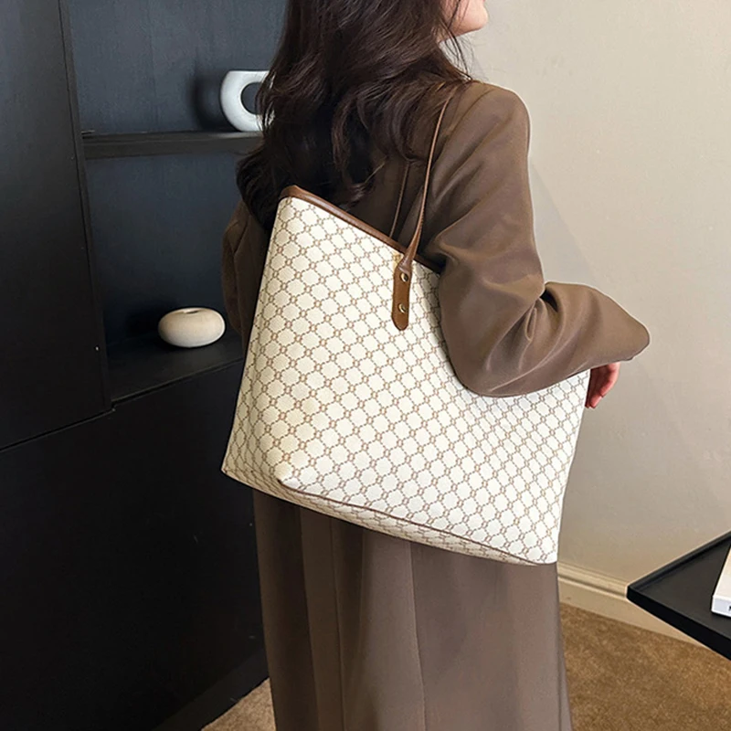 Hnewly NEW Large Capacity Shoulder Bag Women's PU Leather Handbag for Commuting and Casual Use Versatile Tote Bag