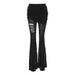 Hnewly New large size fashion women's sexy hot girl low waist tie hollowed wrinkles broken holes leisure flared pants pants pants