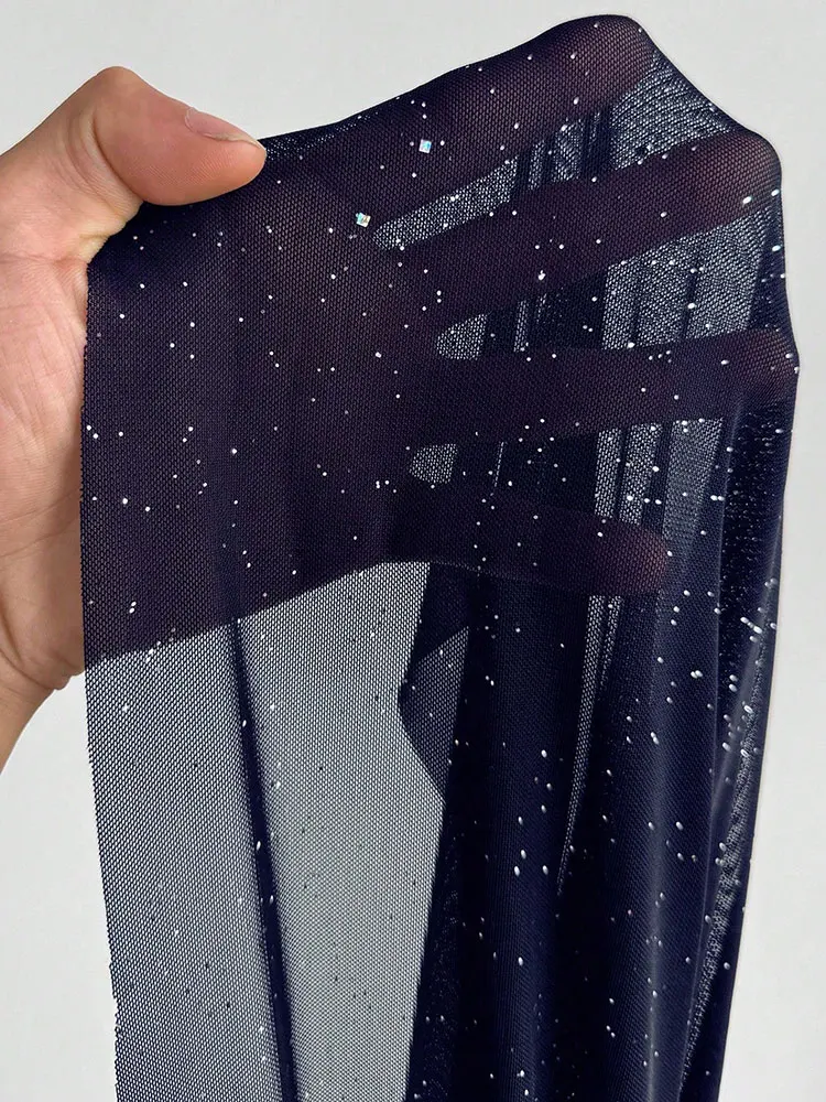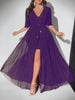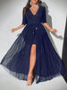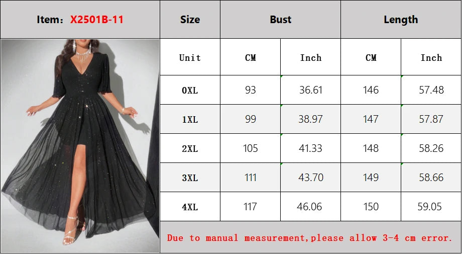 Hnewly New Plus Size Sexy Deep V-Neck Mesh sequins A-line Hem Stitching Lining Dress Retro Flared Sleeve High Slit Skirt Evening Dress
