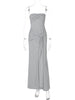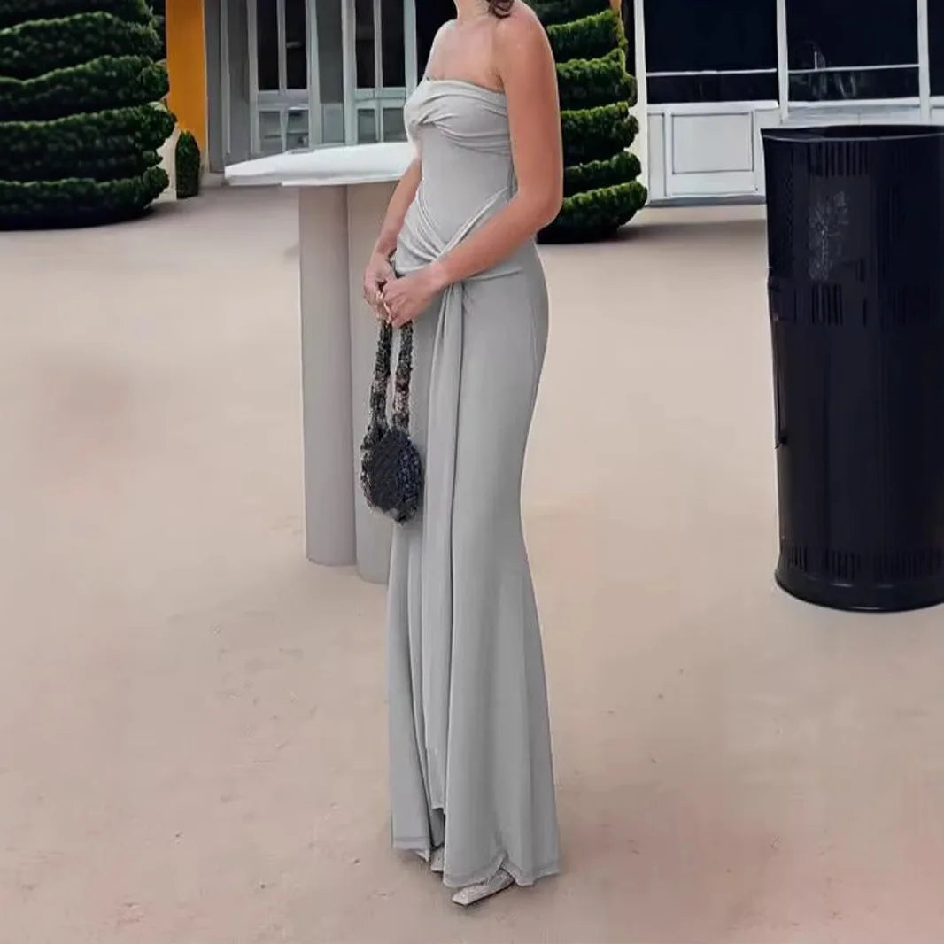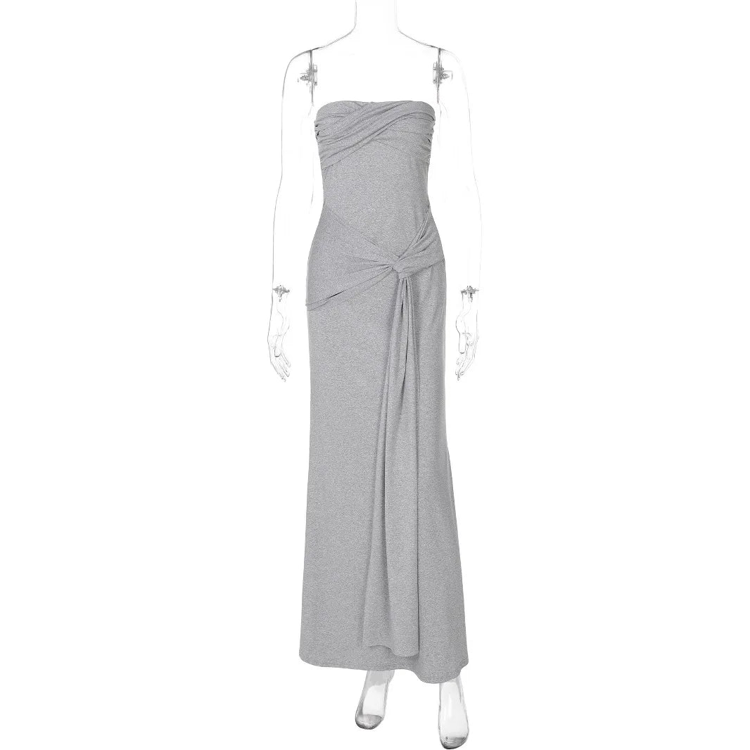Hnewly New Product Temperament Intellectual Wrinkle Off Shoulder Design Sense Hanging Belt Waist for Slimming and Skincare Dress
