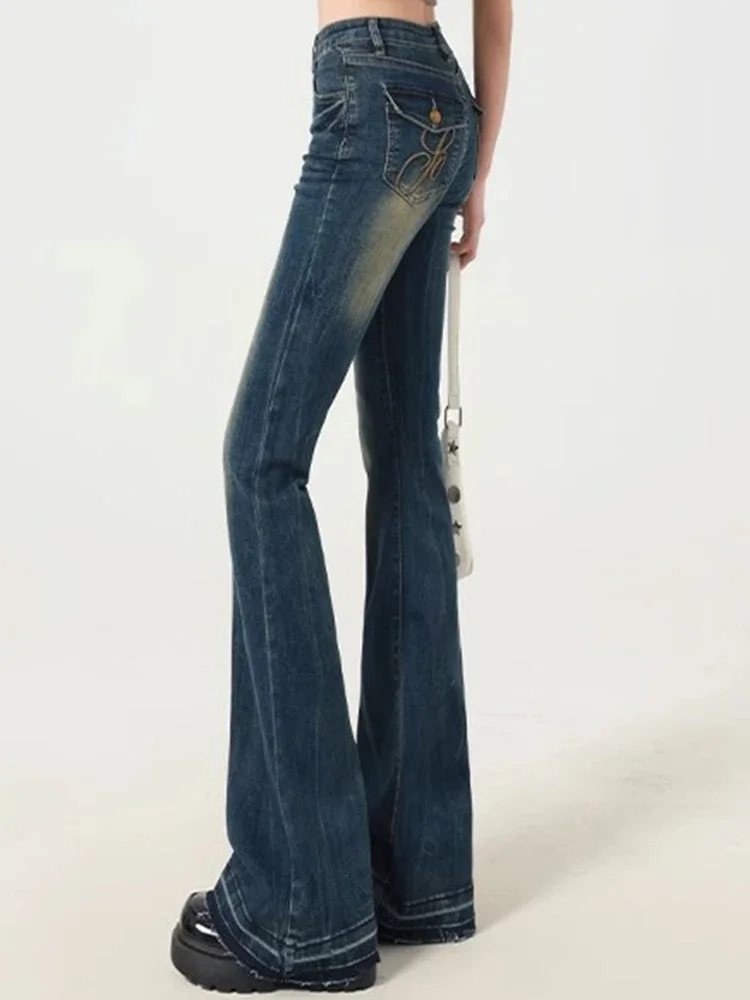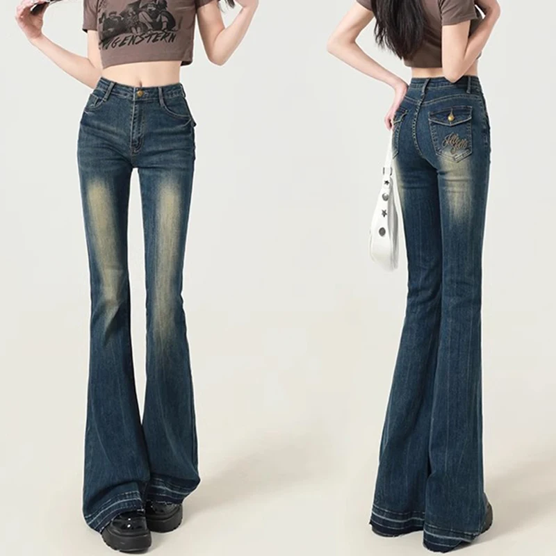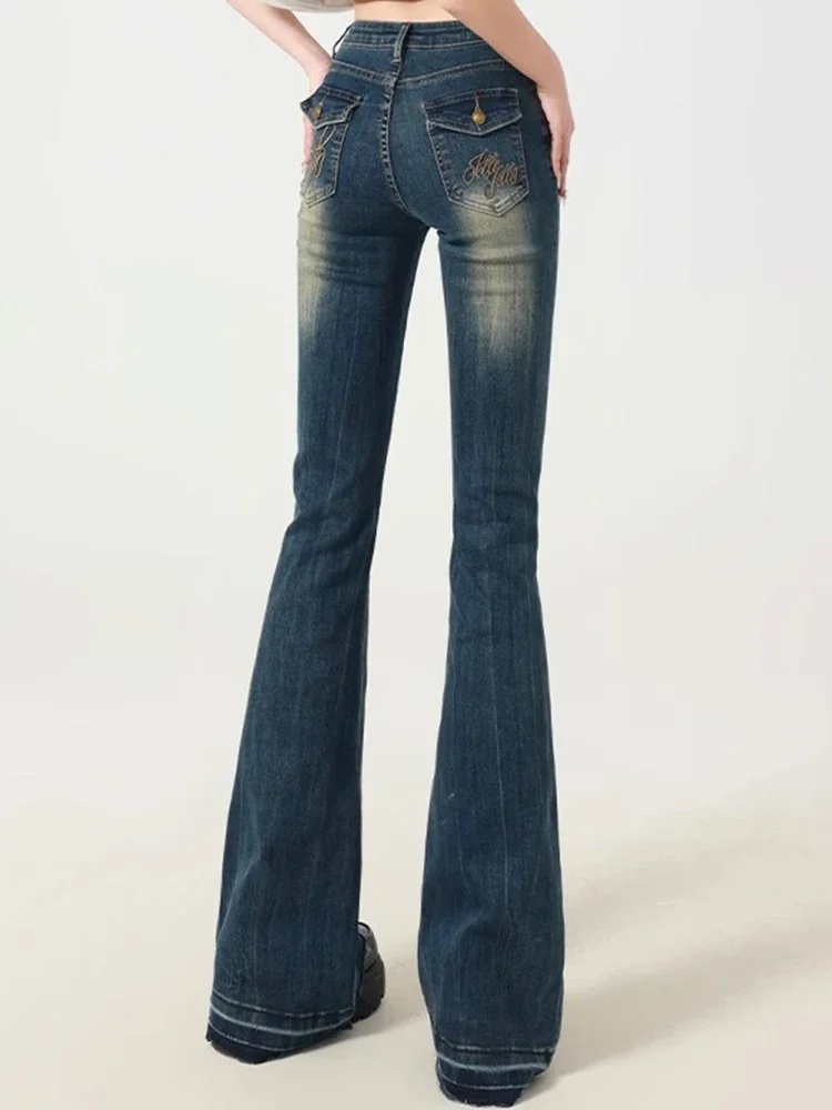 Hnewly New Women American Retro Trashy Y2k 2000s Flare Jeans Lady Elastic Slim Fit Denim Bell Bottom Pants Vintage Retro Blue Trousers