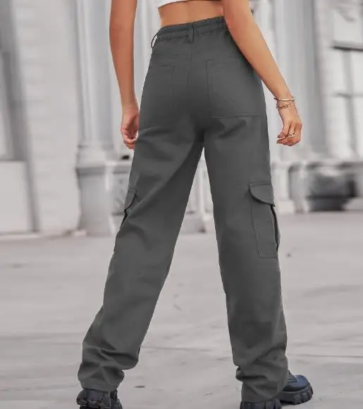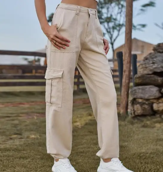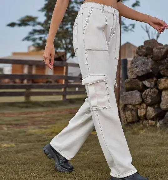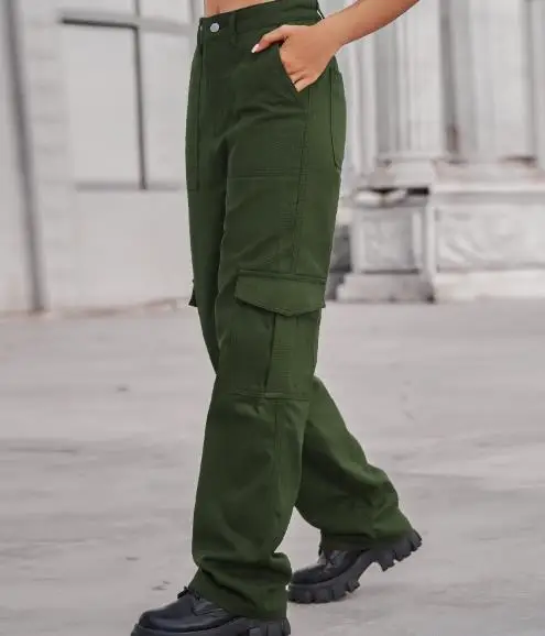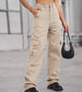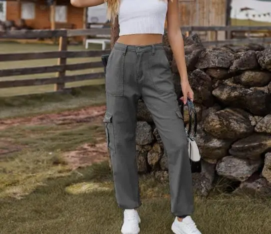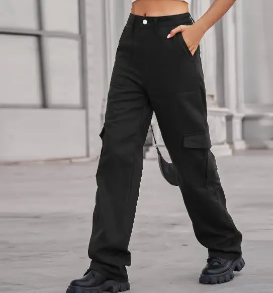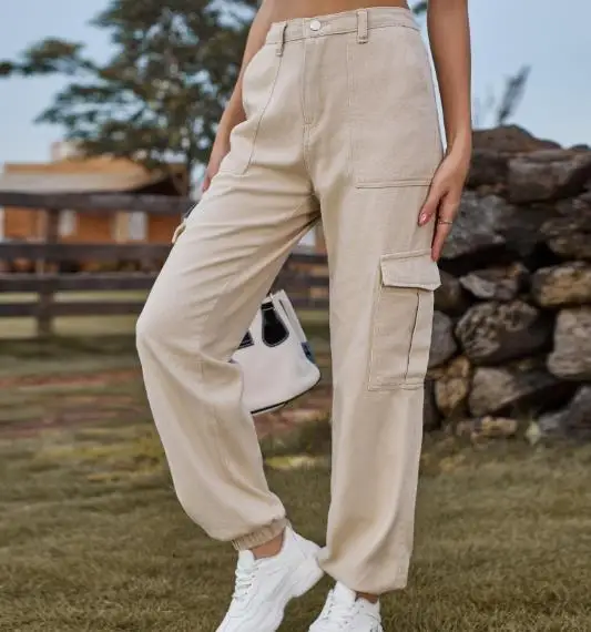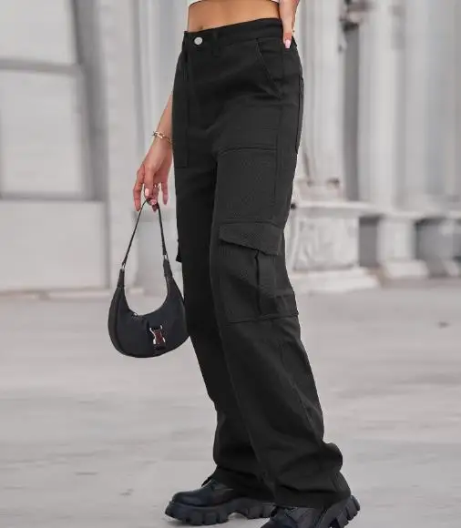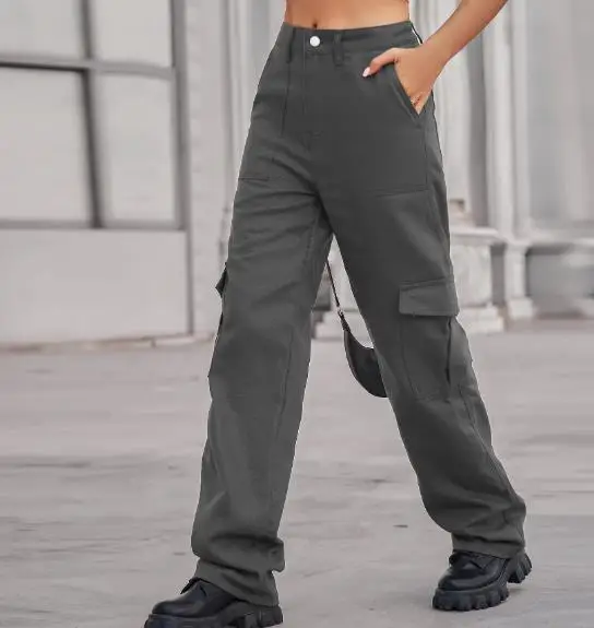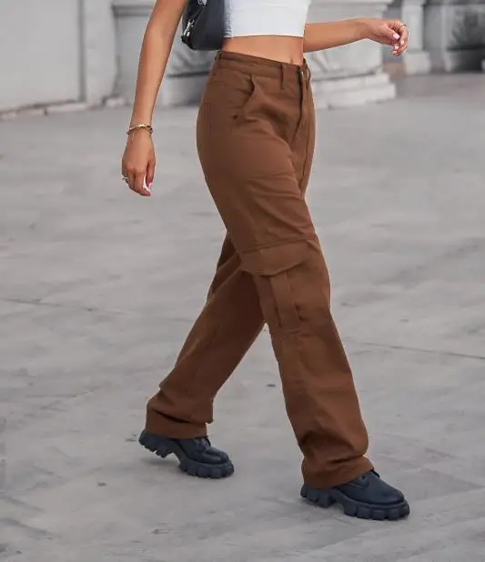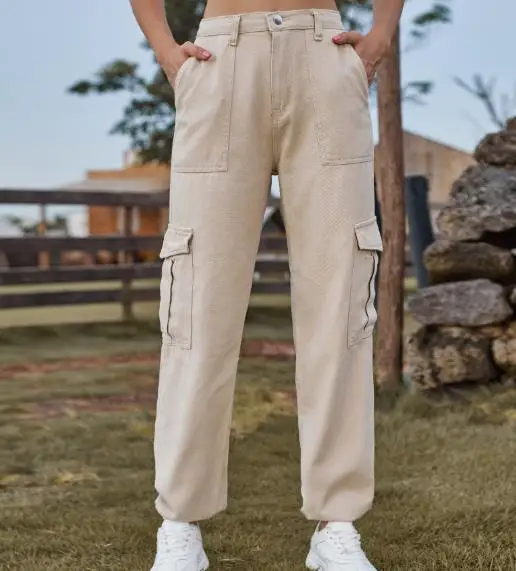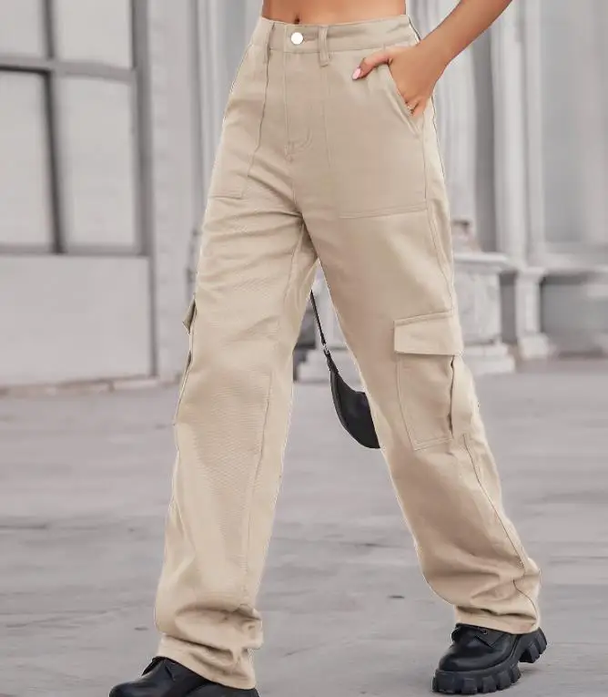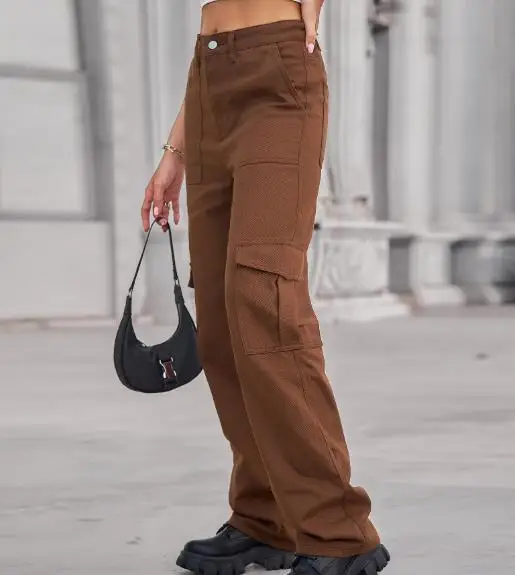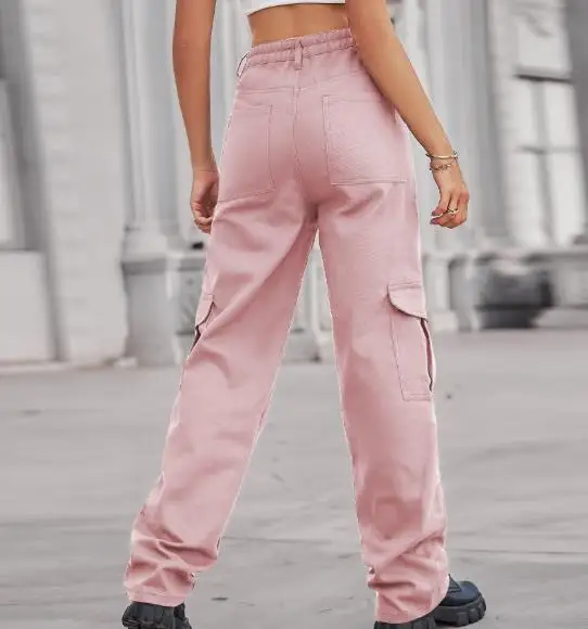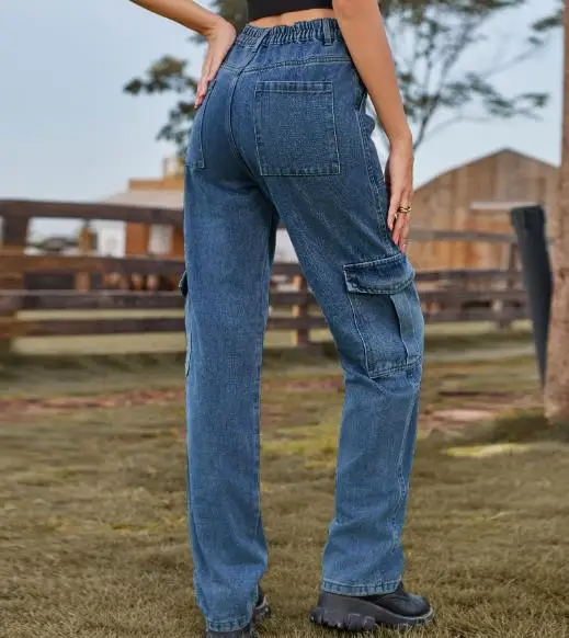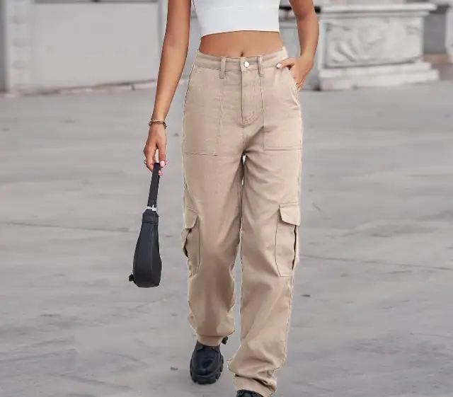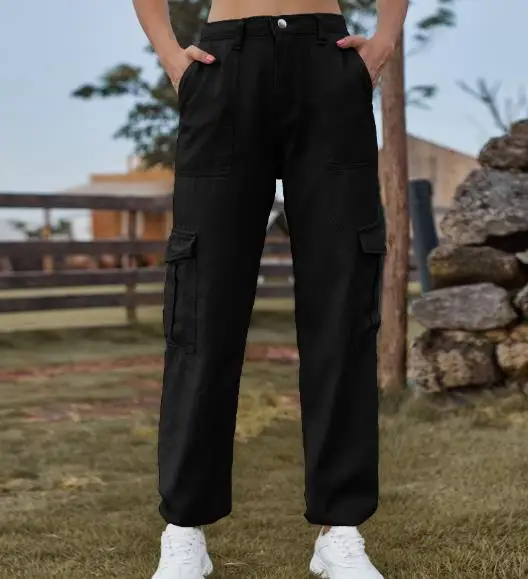 Hnewly New Women's Cargo Wide Leg Pants Pocket Detail and Relaxed Fit Design Casual Fashion Bottoms for Street Wear Denim Pants