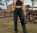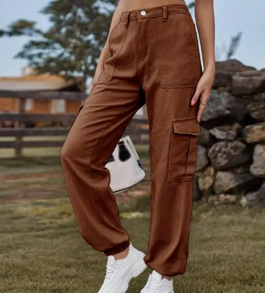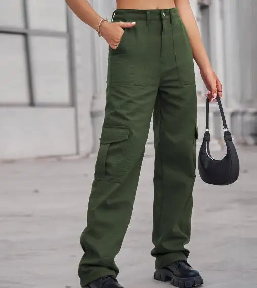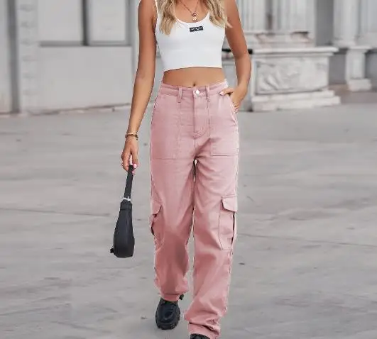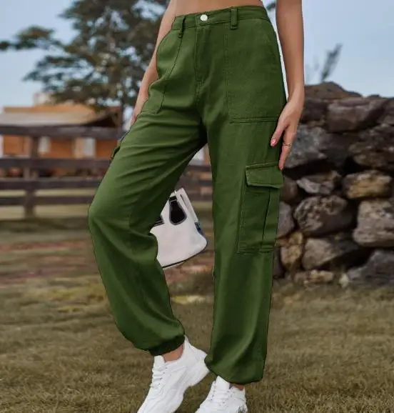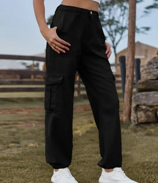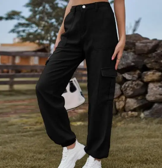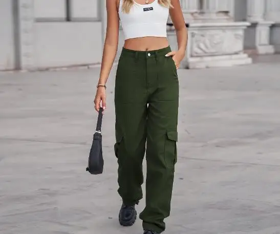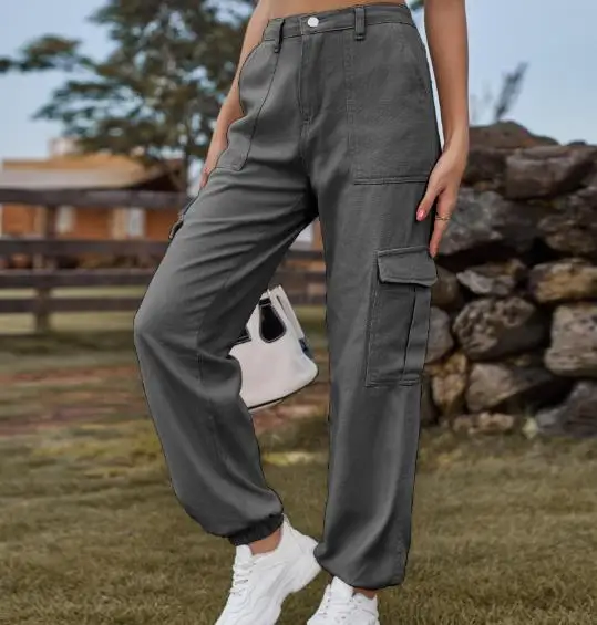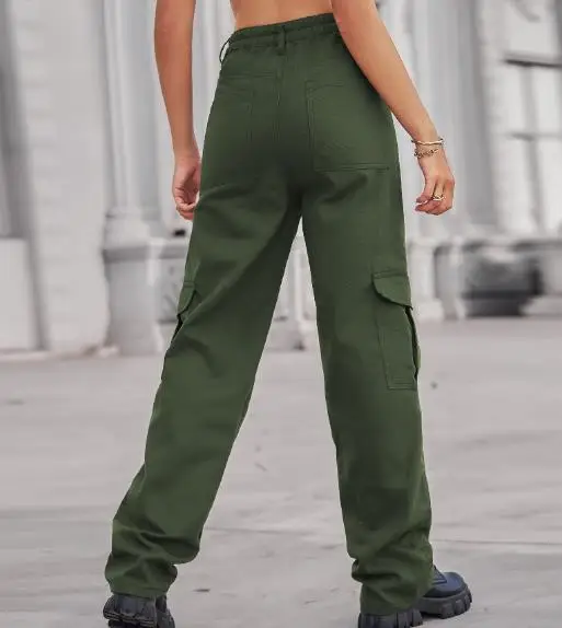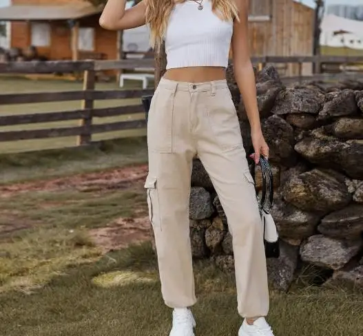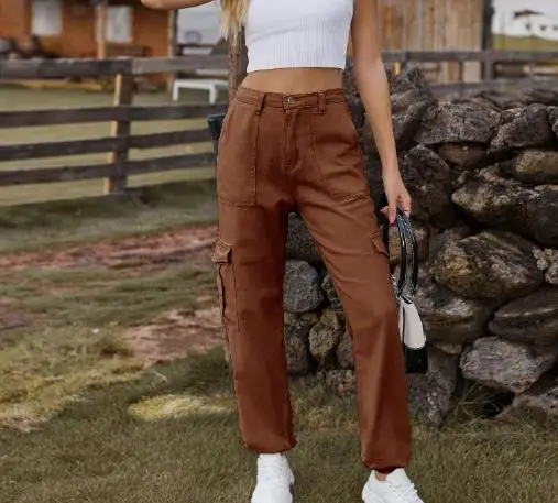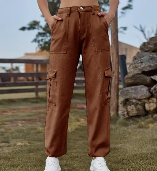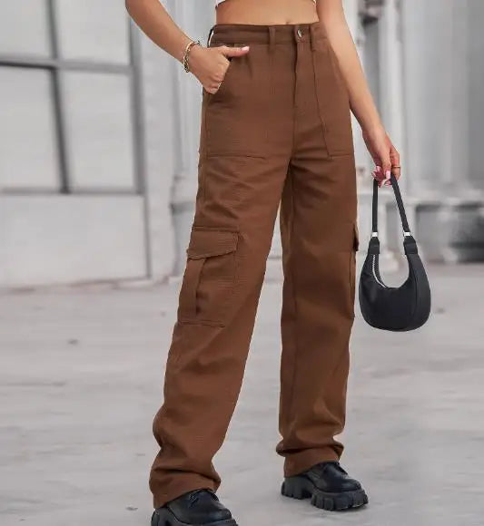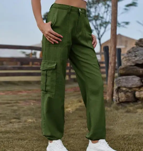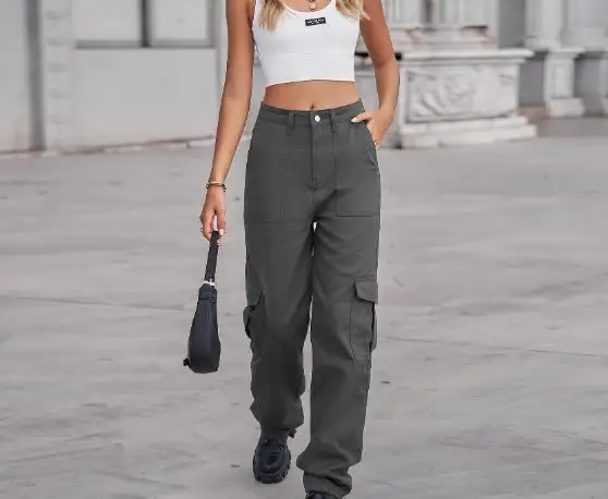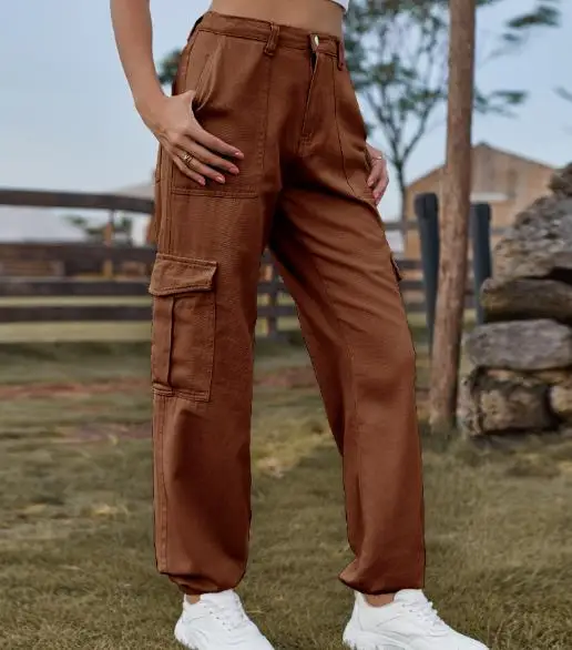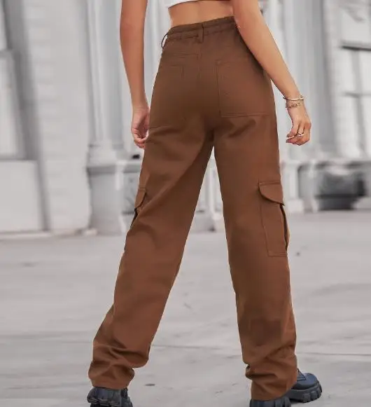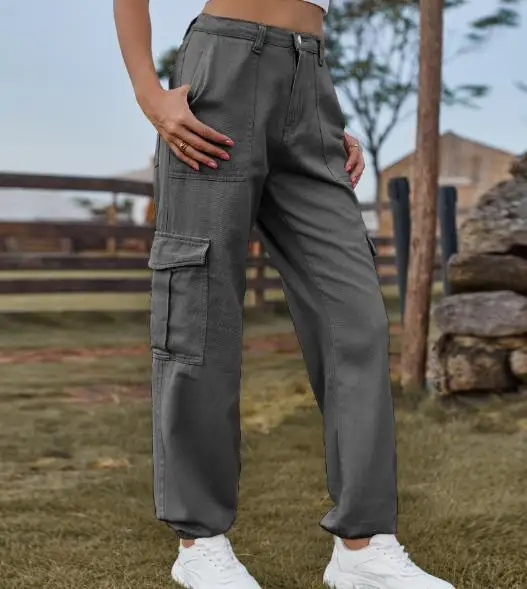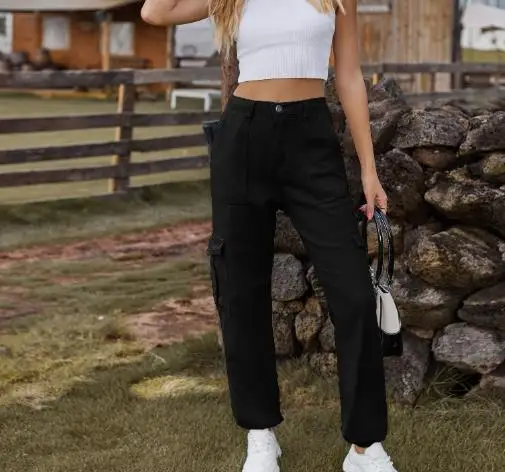Hnewly New Women's Cargo Wide Leg Pants Pocket Detail and Relaxed Fit Design Casual Fashion Bottoms for Street Wear Denim Pants
