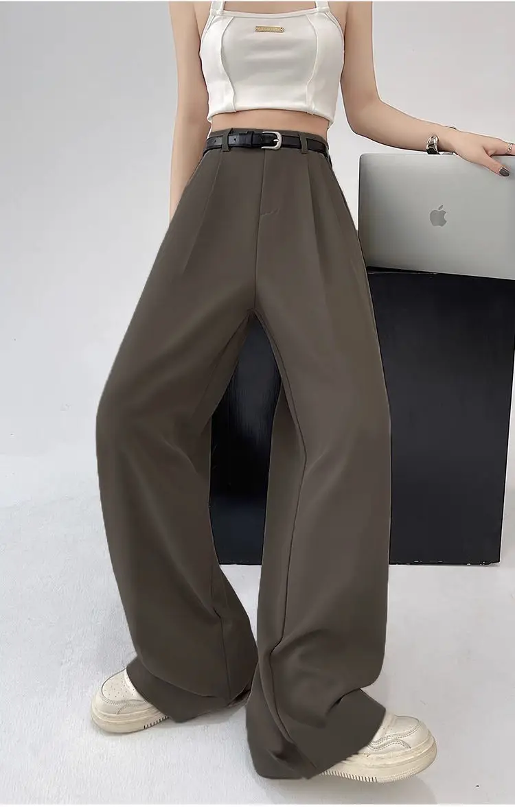Hnewly New Women's Pants Casual Temperament High Waist Loose Straight Trousers Gift Belt Fashion Versatile Wide Leg Pants Women