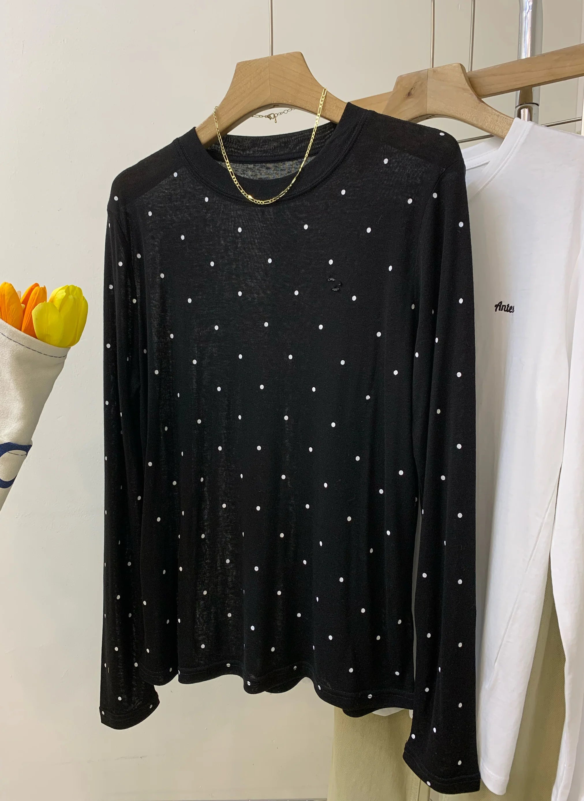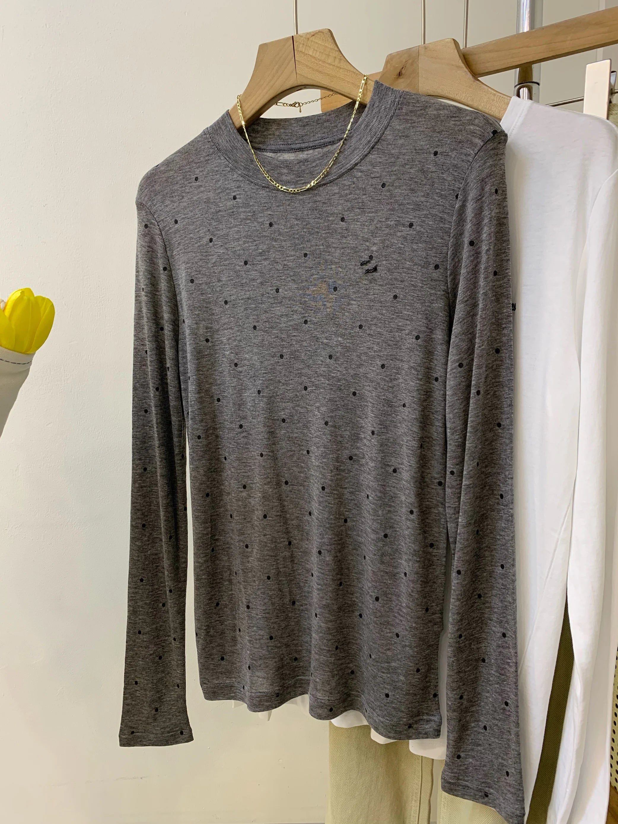 Hnewly O-neck Polka Dot Long Sleeved T-shirt Spring/Summer New Women's Loose Versatile Bottoming Shirt Korean Commuter Cotton Top
