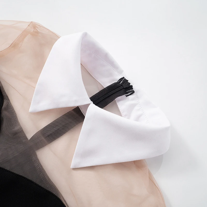 Hnewly Office Lady Contrasting Polo Neck Mesh Patchwork Dress Spring Summer Long Sleeved Slimming A Line Zip Up Short Dresses