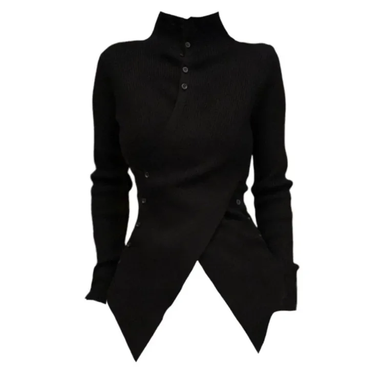 Hnewly Oversize Irregular Slim Fit Bottoming Sweaters Simple Black Turtleneck Knitted Tops Women Autumn New Long Sleeve Cardigan