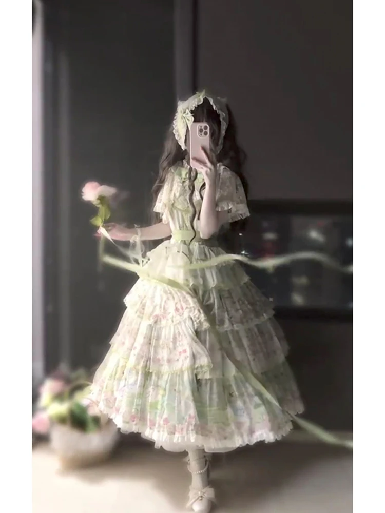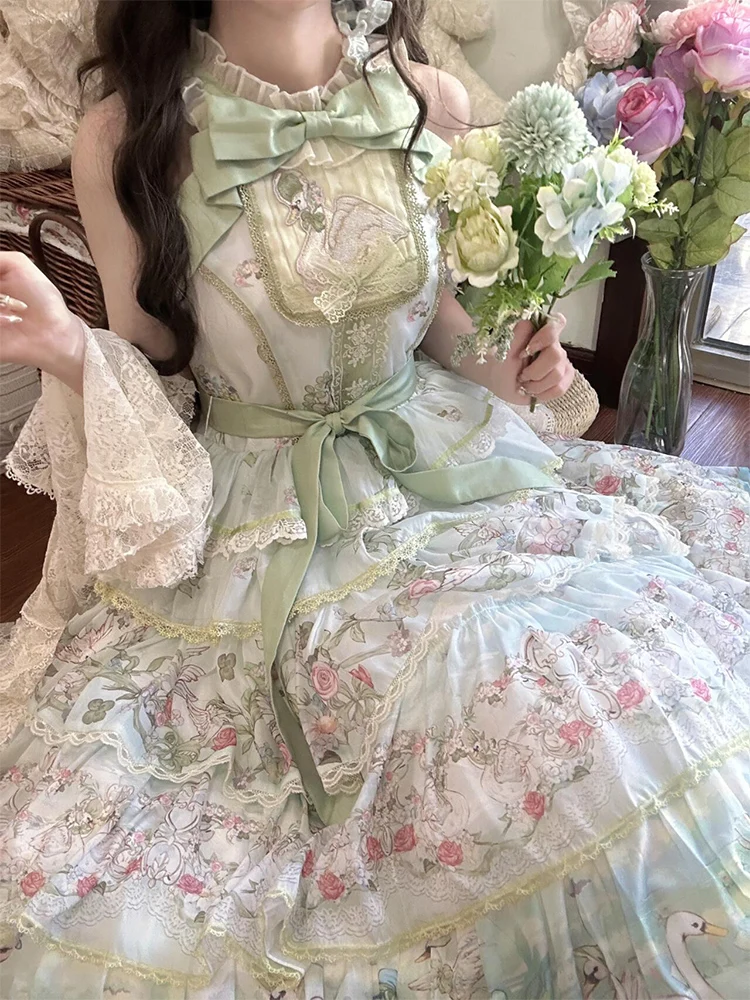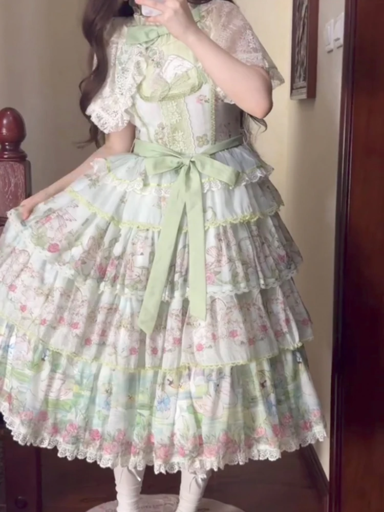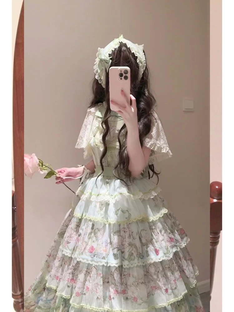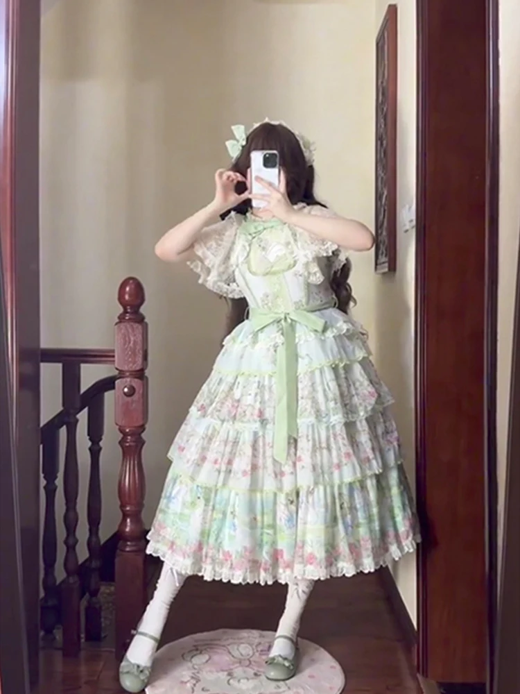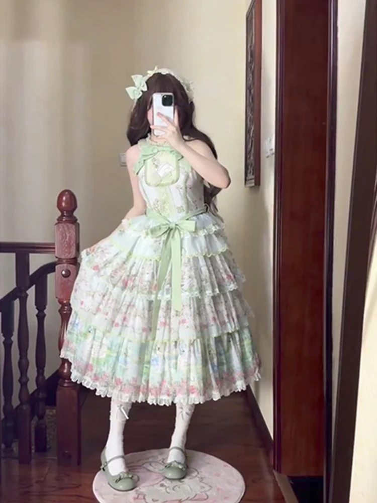 Hnewly Pastoral Style Japanese Original New Lolita Sweet JSK Dress Elegant Lady Daily LO Dress Bowknot Small Floral Dresses
