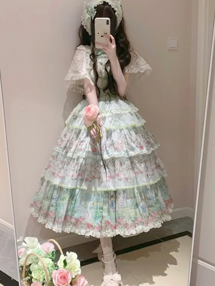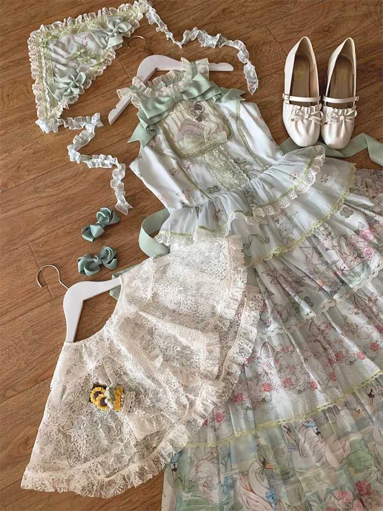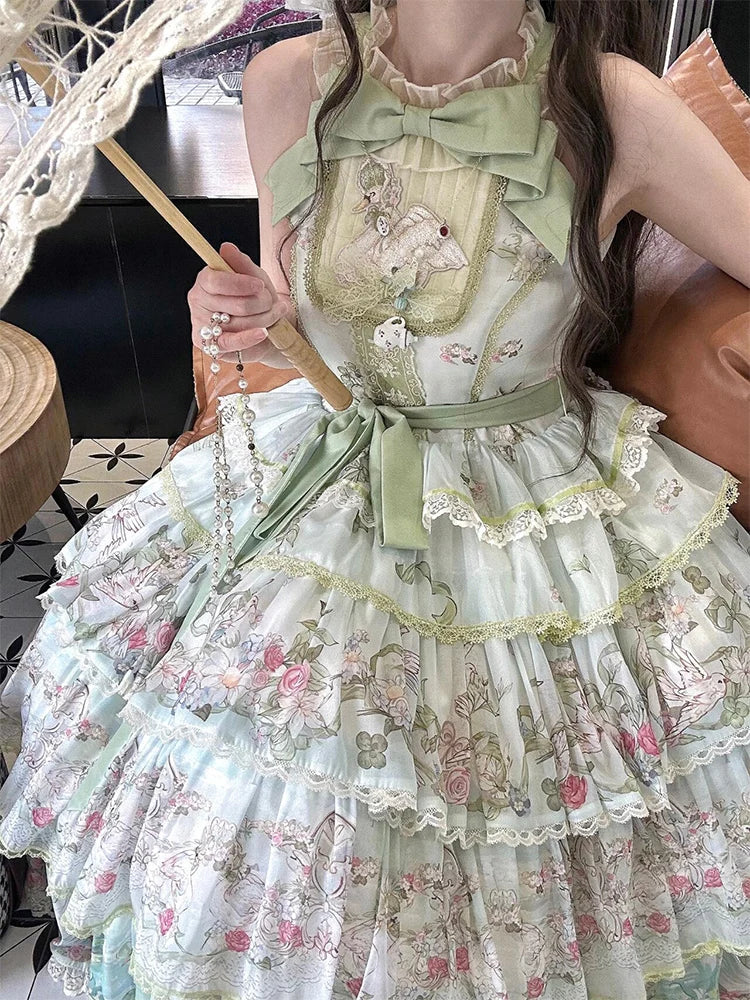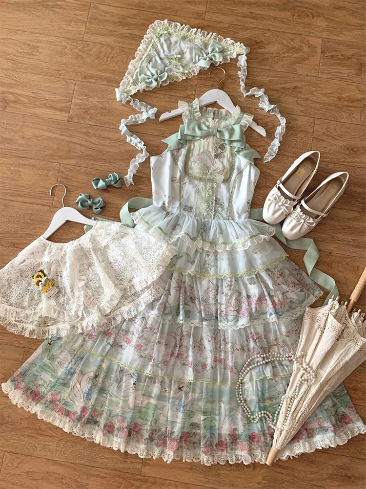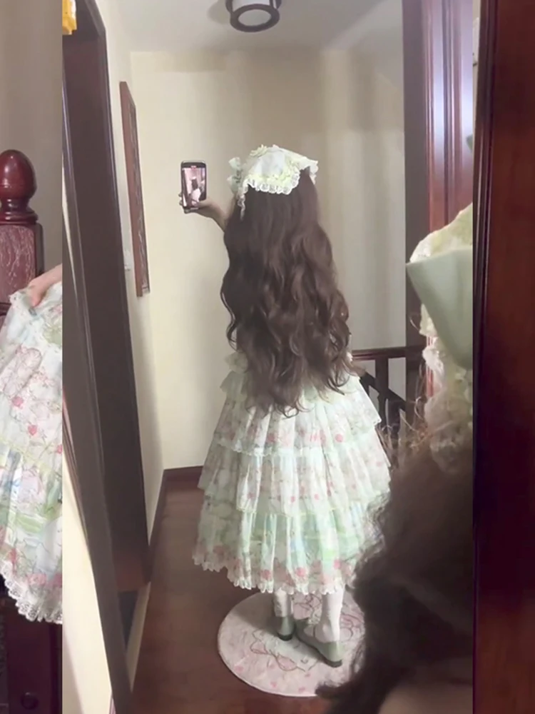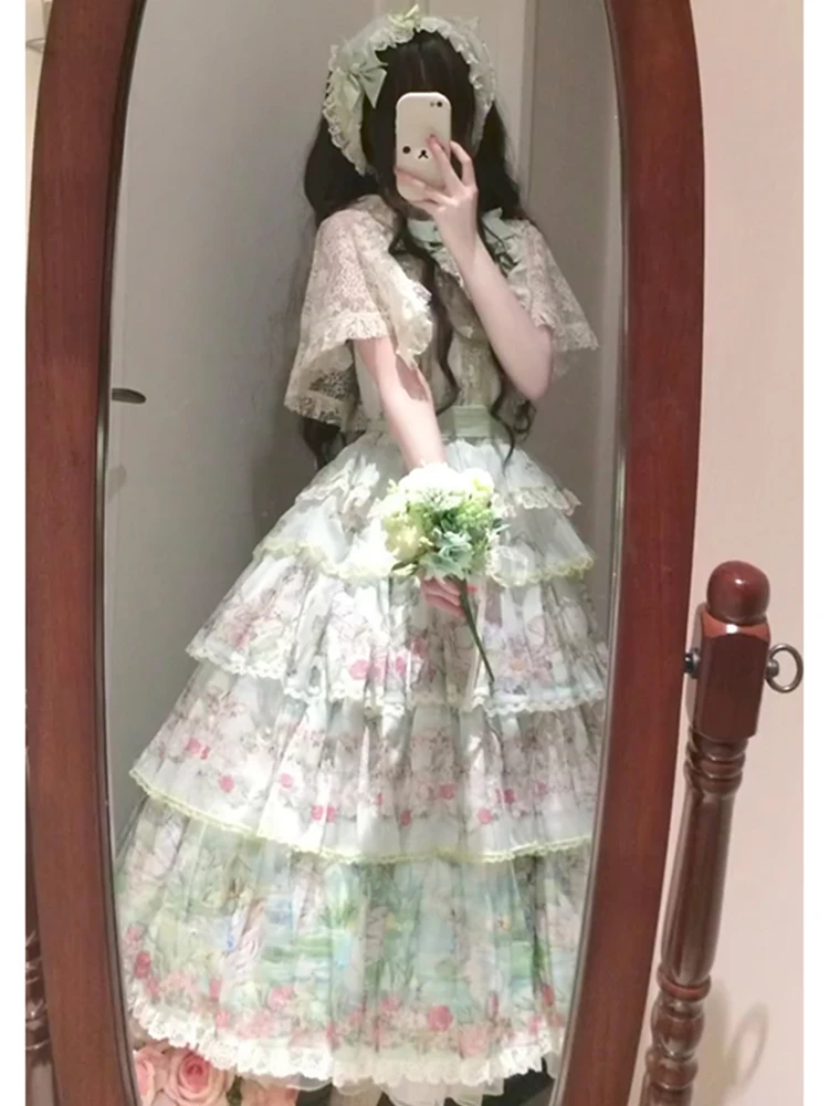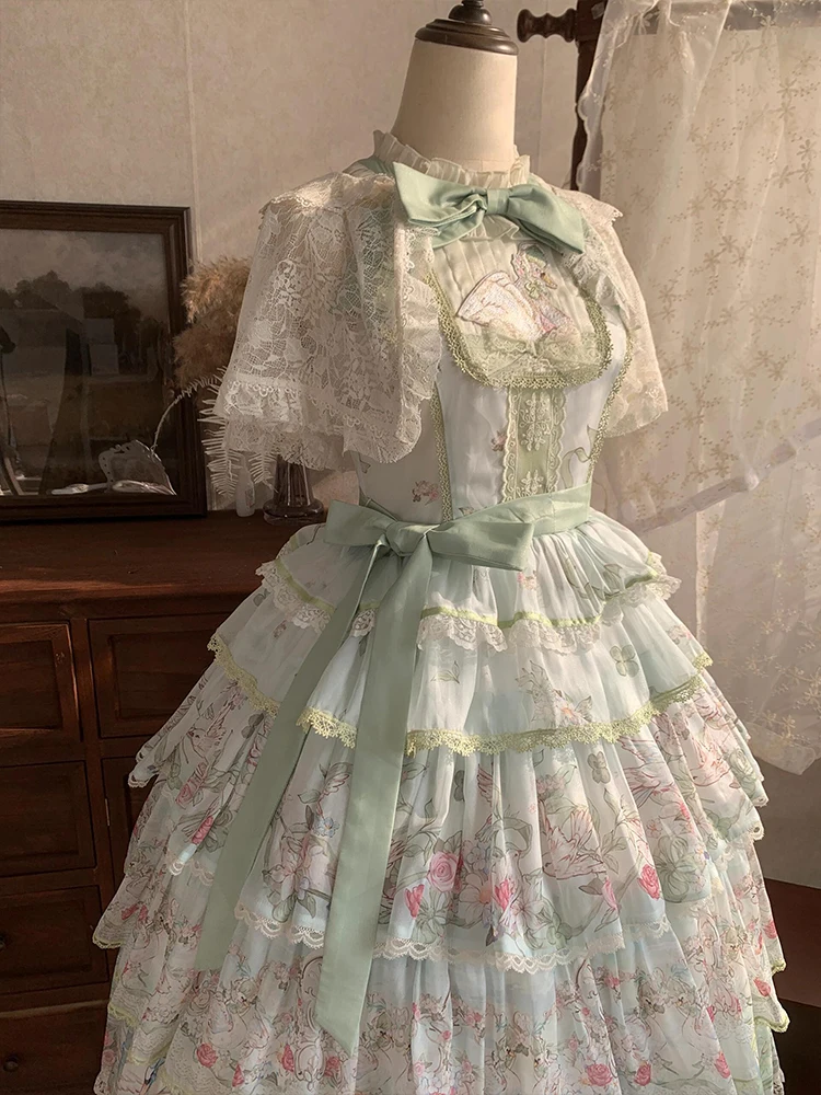 Hnewly Pastoral Style Japanese Original New Lolita Sweet JSK Dress Elegant Lady Daily LO Dress Bowknot Small Floral Dresses