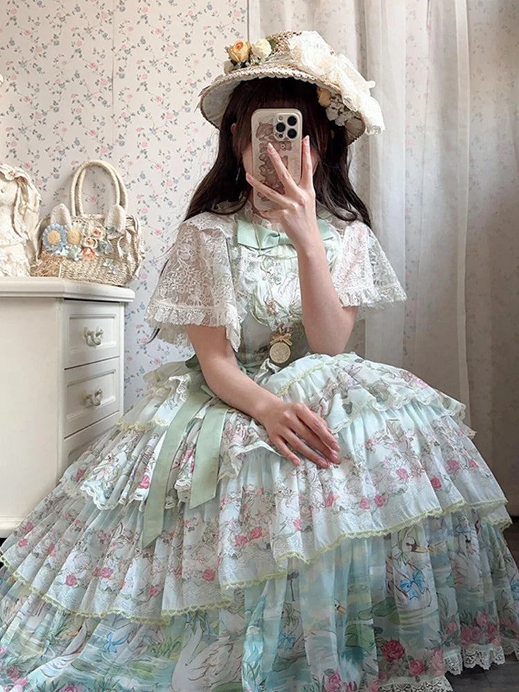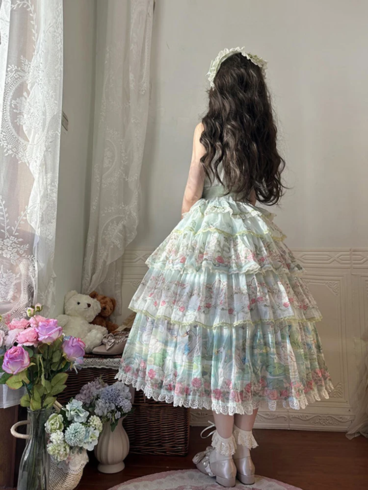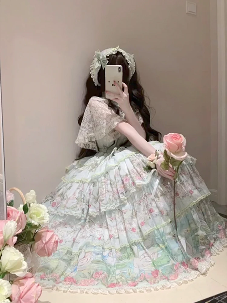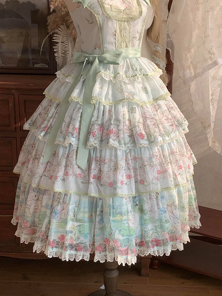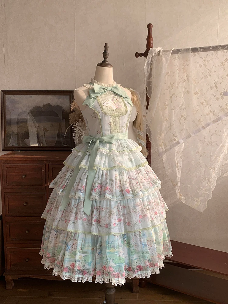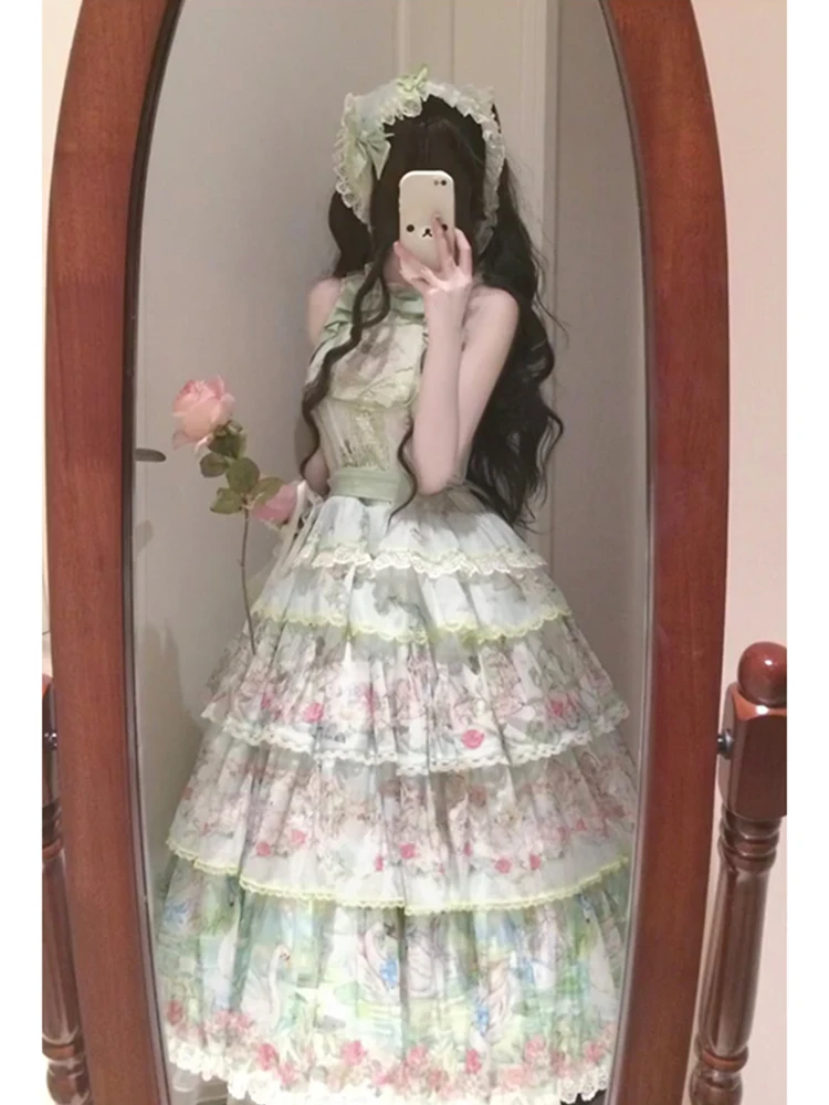 Hnewly Pastoral Style Japanese Original New Lolita Sweet JSK Dress Elegant Lady Daily LO Dress Bowknot Small Floral Dresses