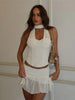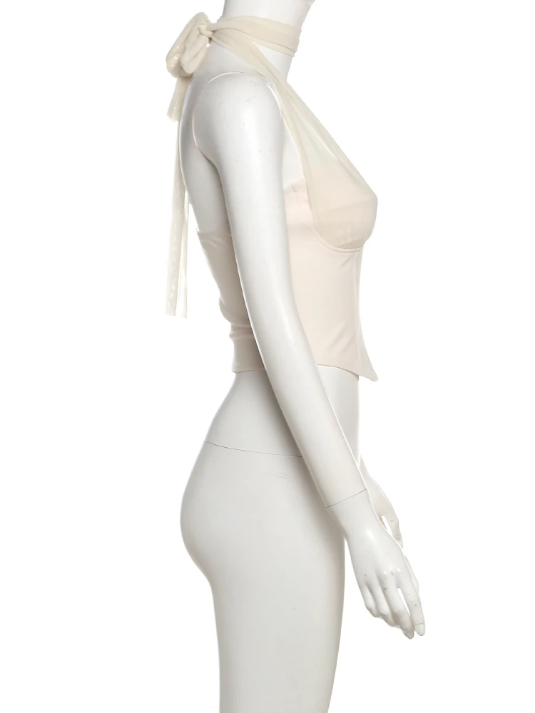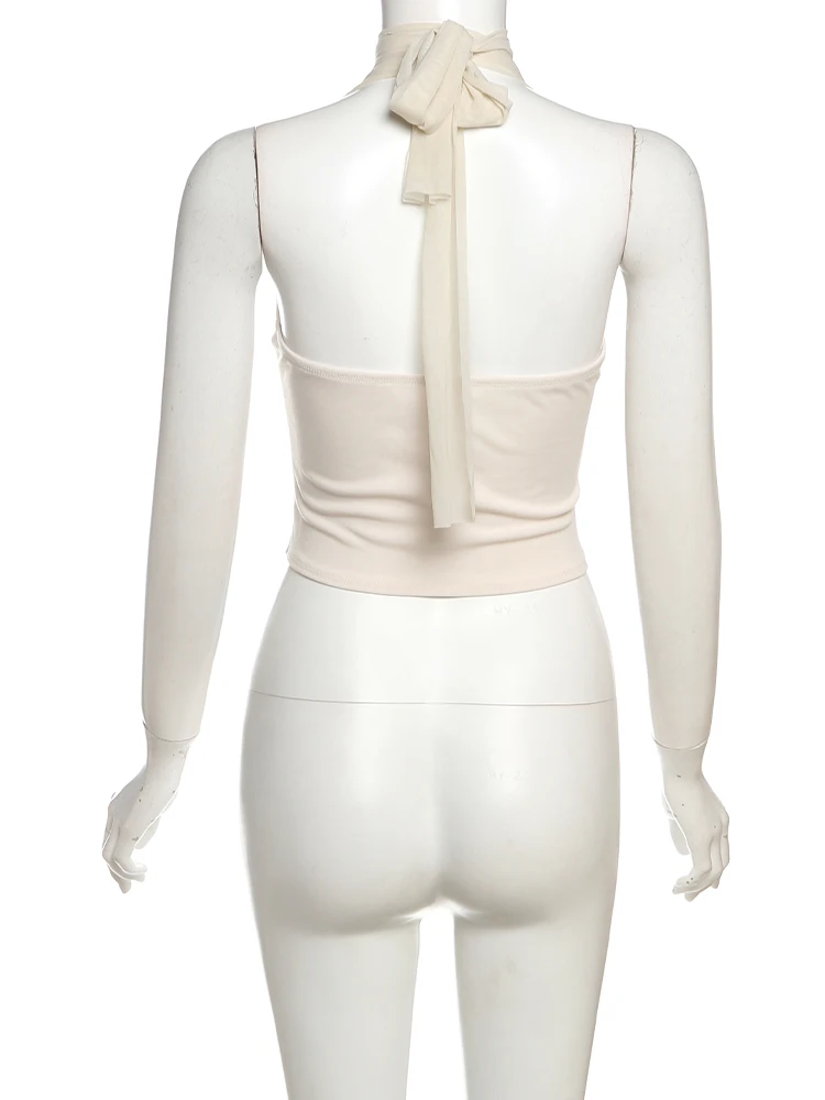 Hnewly Patchwork Mesh Vest Women Y2K Low-Neck Halter Backless Sleeveless Sexy Midnight Summer Trend Basic Simple Daily Tops
