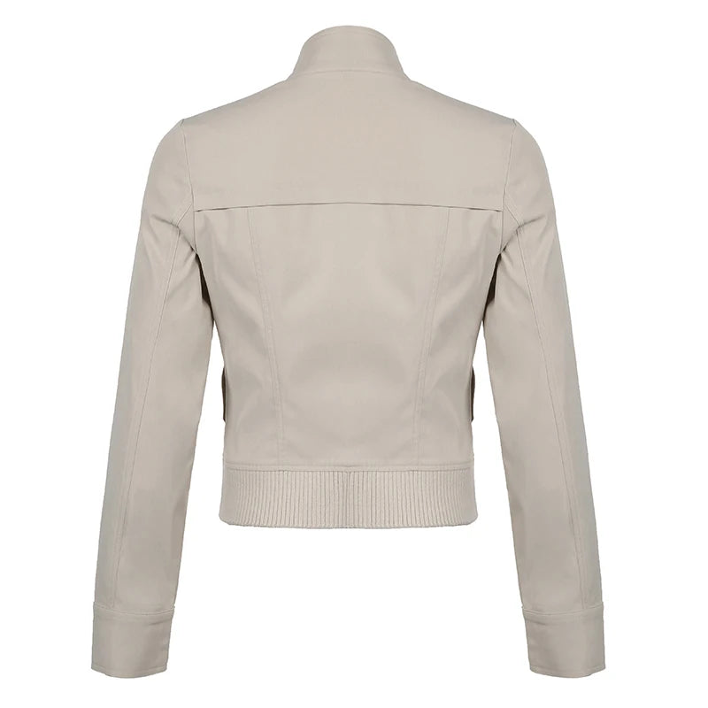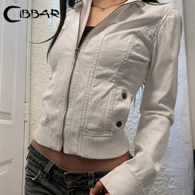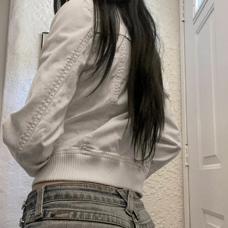 Hnewly Patchwork Zip-up Cropped Jacket y2k Streetwear Full Sleeve Turtleneck Pockets Coat for Women Vintage 2000s Clothing Basic