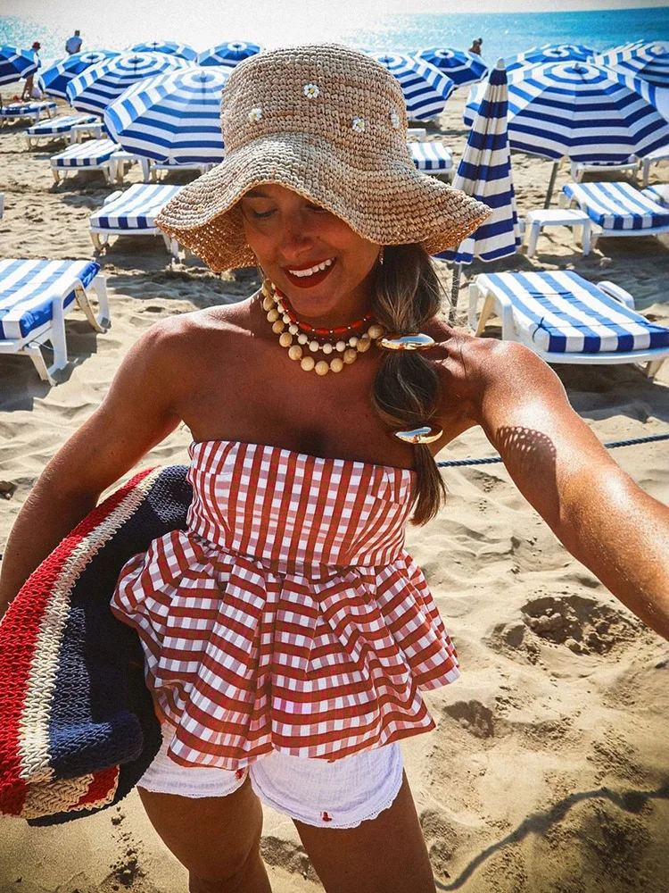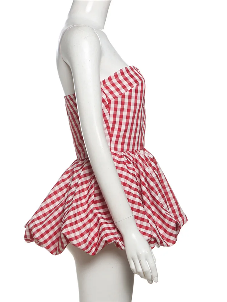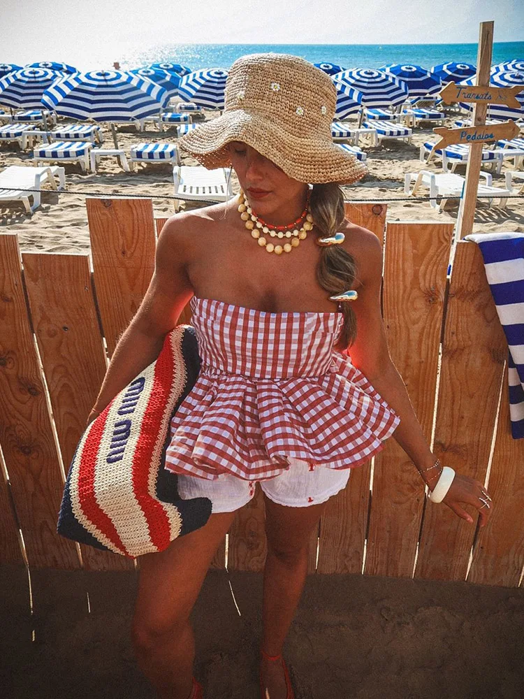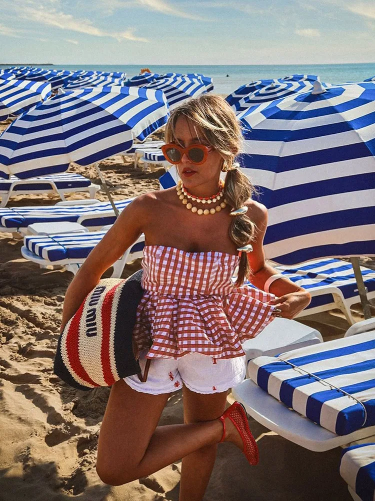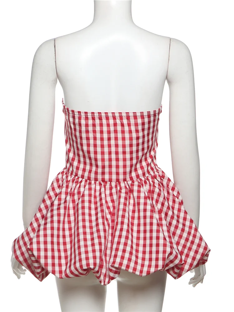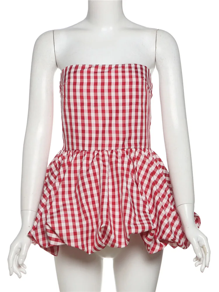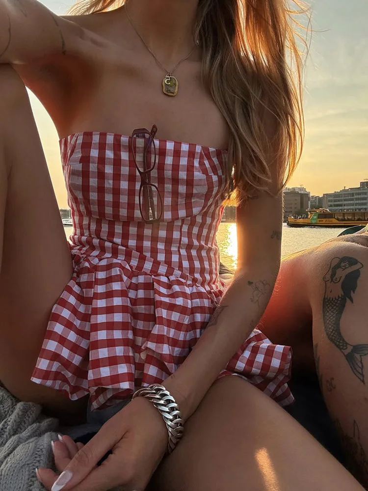 Hnewly Plaid Print Corset Tops Women Y2K Summer Pleated Fluffy Hem Sleeveless Basic Street Backless Vacation Beach Party Top