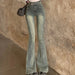 Hnewly Pockets Vintage High Waist Skinny Jeans Female Hong Kong Style Denim Bell Bottom Pants Spicy Girl Blue Oversized Boot Cut Jeans