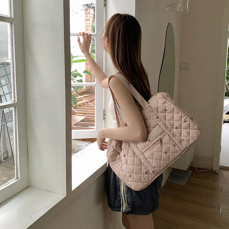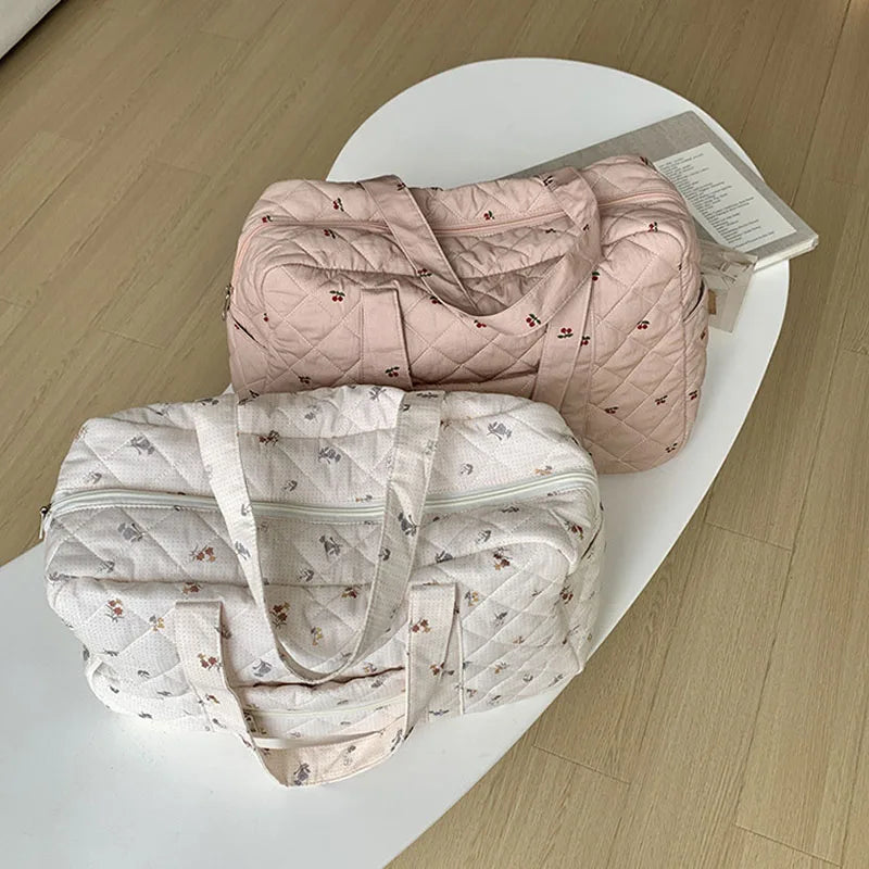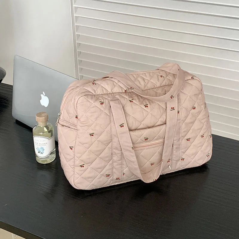 Hnewly Portable Duffle Luggage Travel Bag Cherry Quilted Cotton Mommy Handbag Large Capacity Shoulder Bags For Women