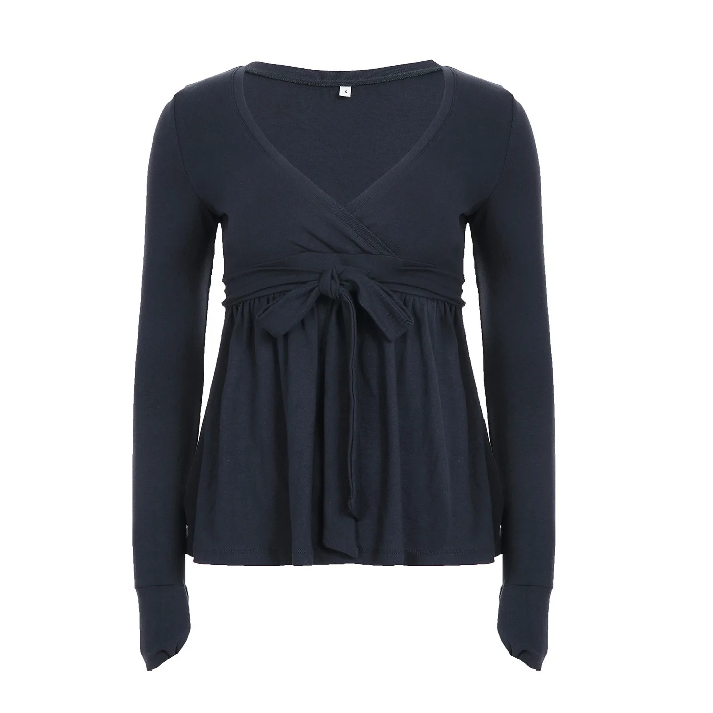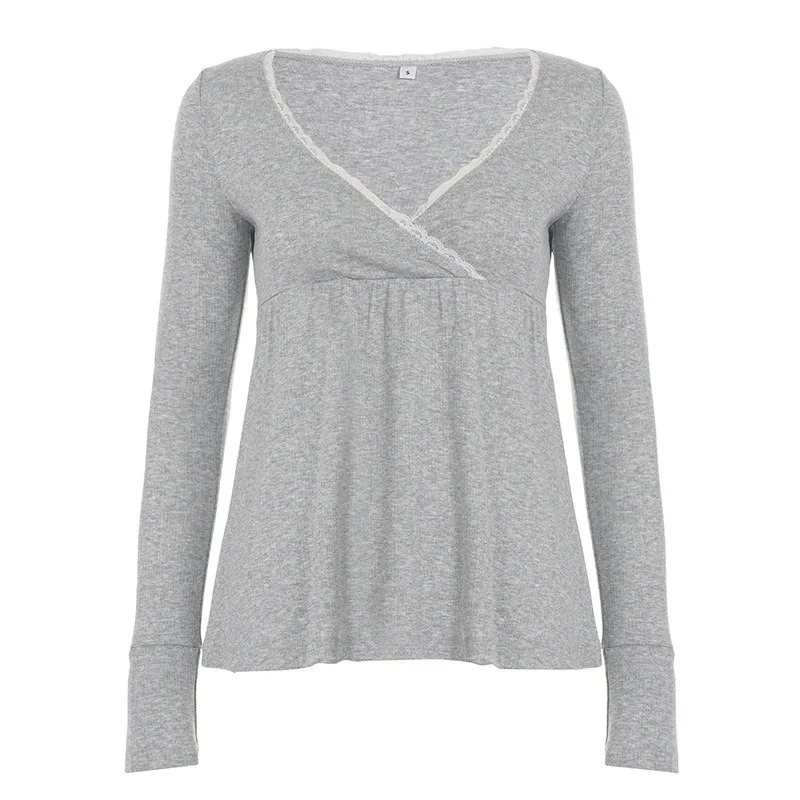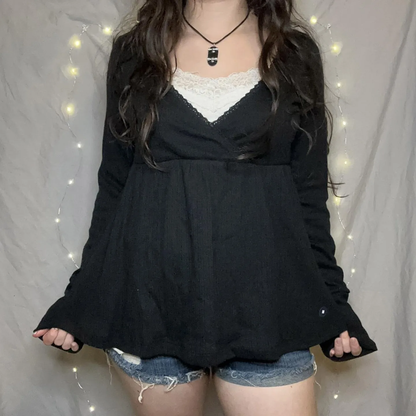 Hnewly Preppy Fake 2 Piece Lace Trim Long Sleeve Pullovers Tees Cottage Bandage Babydoll T-shirt Women Autumn Vintage Y2k Crop Tops