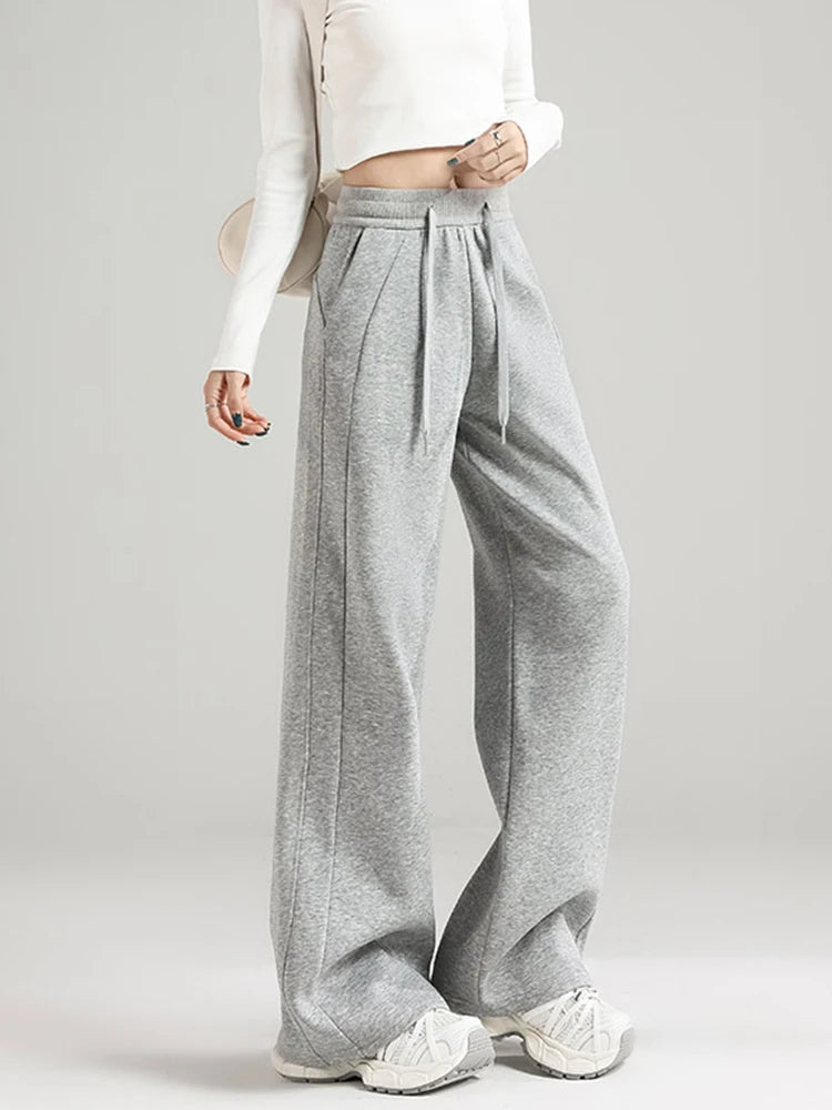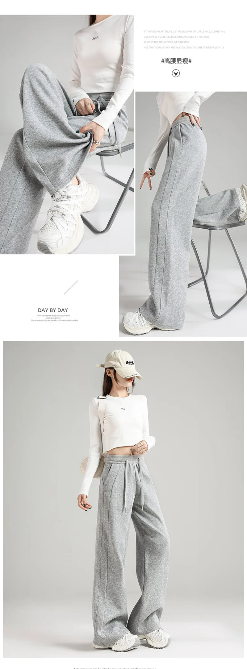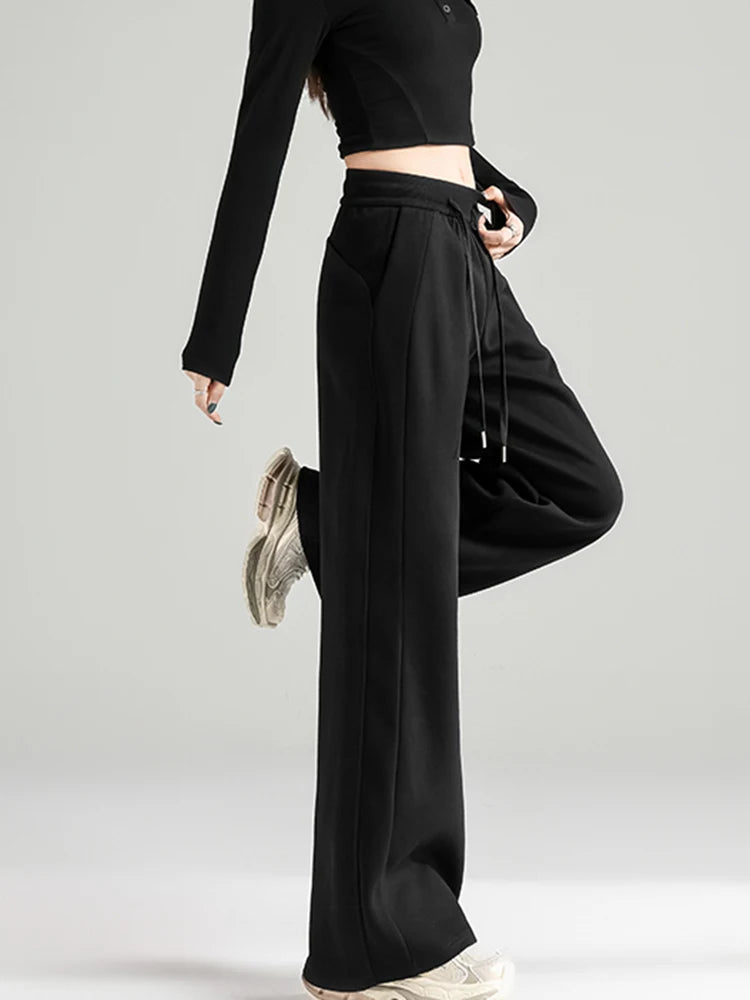 Hnewly Preppy Style Black Sweatpants Women Vintage High Waist Loose Straight Pant Korean Casual Fall Lace Up Wide Leg Trousers New
