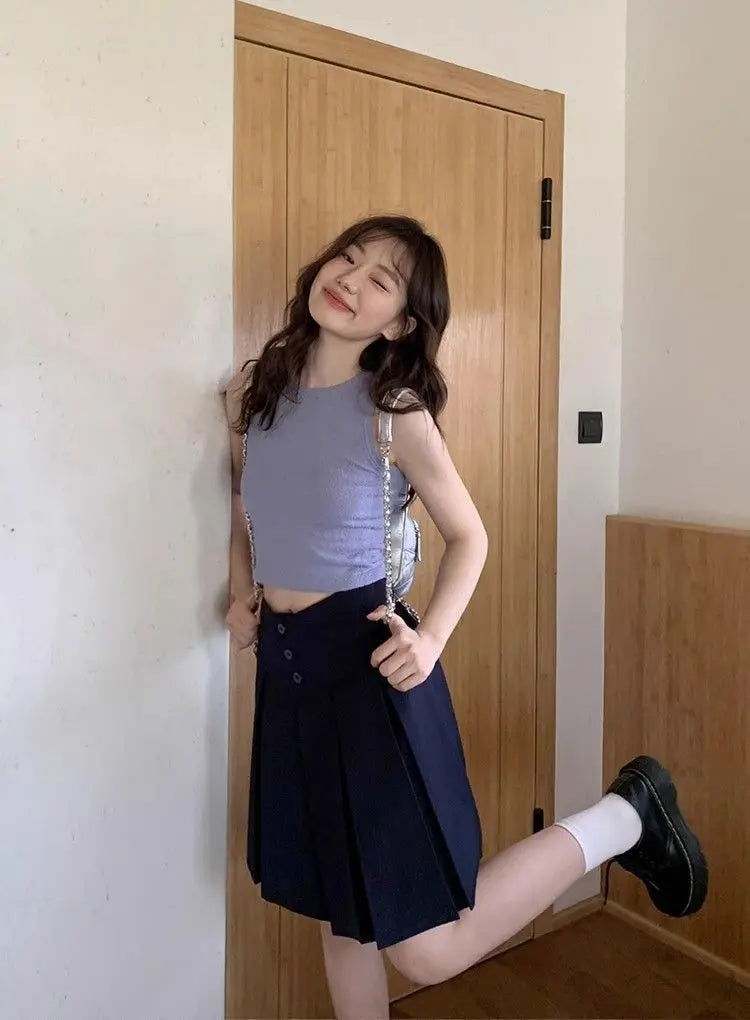 Hnewly Preppy Style Pleated Skirt Women Korean Style Vintage Harajuku Mid Length Skirt Fashion Retro Solid Classic Skirts