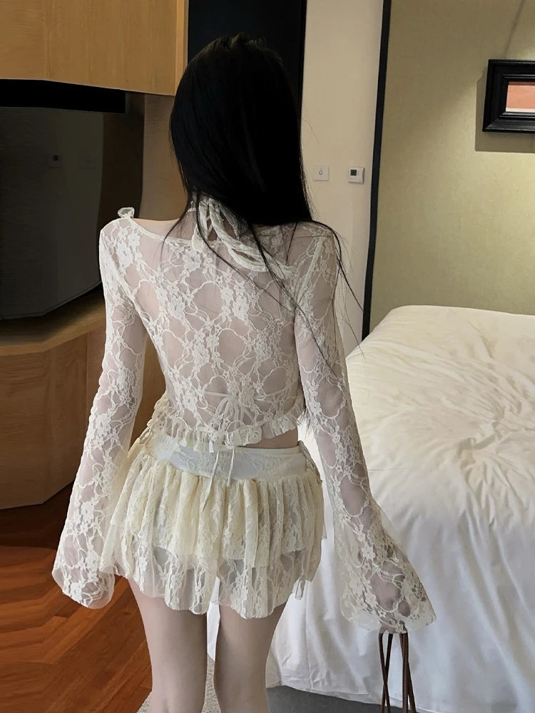 Hnewly Pure Desire Sweet Lace Trim Bikini Set Vaion Travel Sexy Skirt Separate Swimwear Polyester Fabric Long Sve V Ne