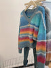 Hnewly Rainbow Striped V-neck Sweater Women Spring Autumn New Loose Long Sleeved Knitted Top Korean Version Soft Versatile Pullover