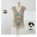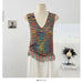 Hnewly Retro Colored Striped Camisole Vest Women's 2025 New Summer New Sleeveless O-neck Knitted Shirt Elegant Hollow Out Short Top