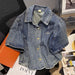 Hnewly Retro Denim Jacket Women's 2025 Summer New Loose Versatile Short Sleeved Top Large Size Single Breasted Turndown Collar Shirt