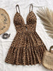 Hnewly Retro Leopard Printed Camis Dress Women Summer Sexy Hollow Out Sleeveless Mini Dress Harajuku Bohemian Beach Vacation Vestidos