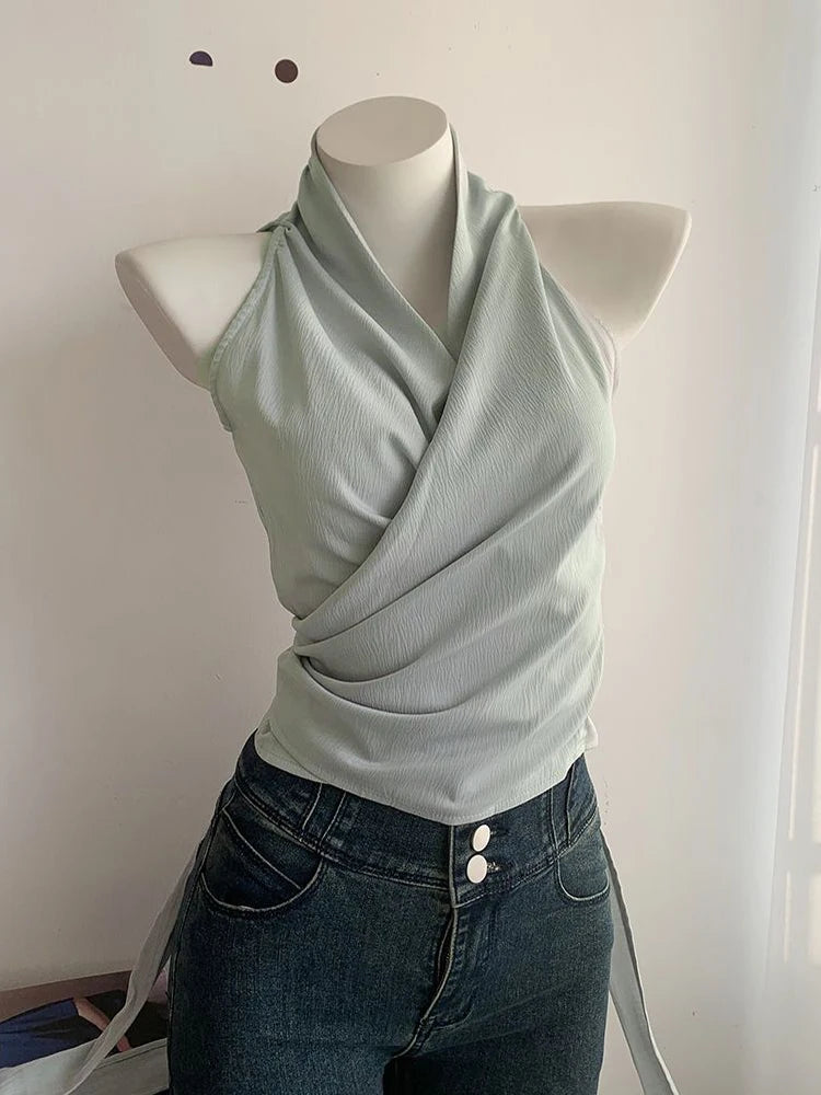 Hnewly Sexy Bandage Slim Tanks Women Fashion Casual V Neck Design Halter Tanks Korean Retro Streetwear Female Summer Elegant Tops