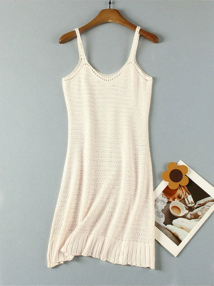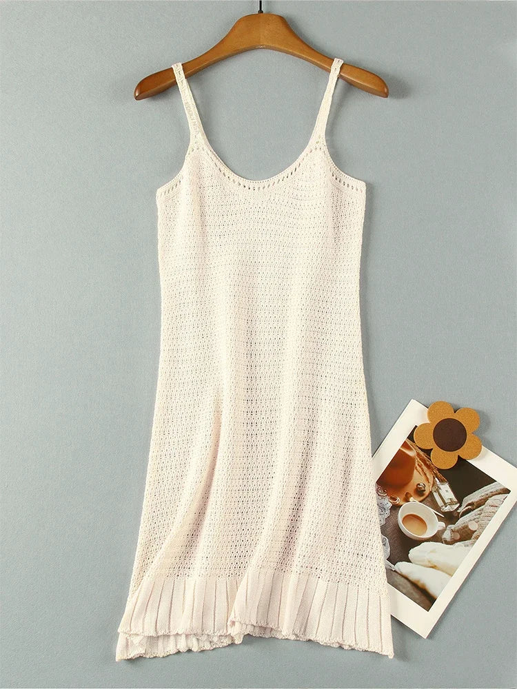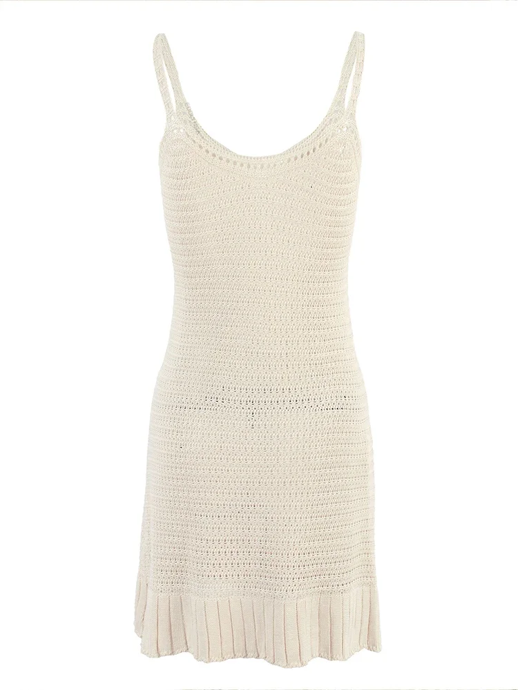 Hnewly Sexy Crochet Halter V Neck Chic Ruffle Knit Beach Mini Dress Women Comfy Swimsuit Cover Up Seaside Holiday Club Dresses